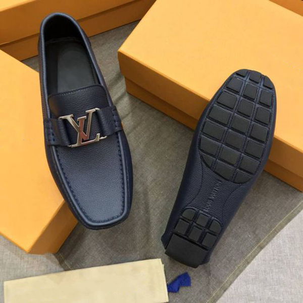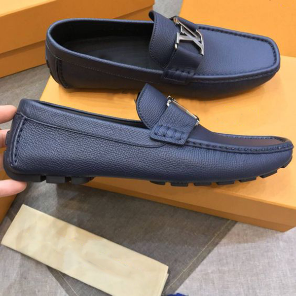 Classic Blue Leather Men's Slip On Shoes