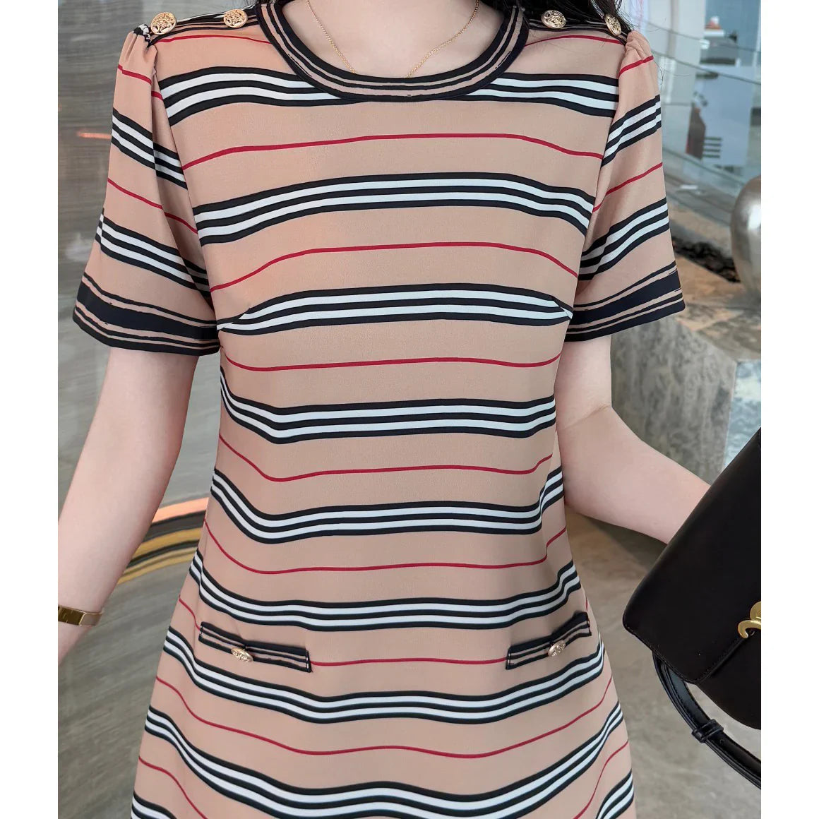 New Fashion Striped Slim A-line Dresses 1025051321