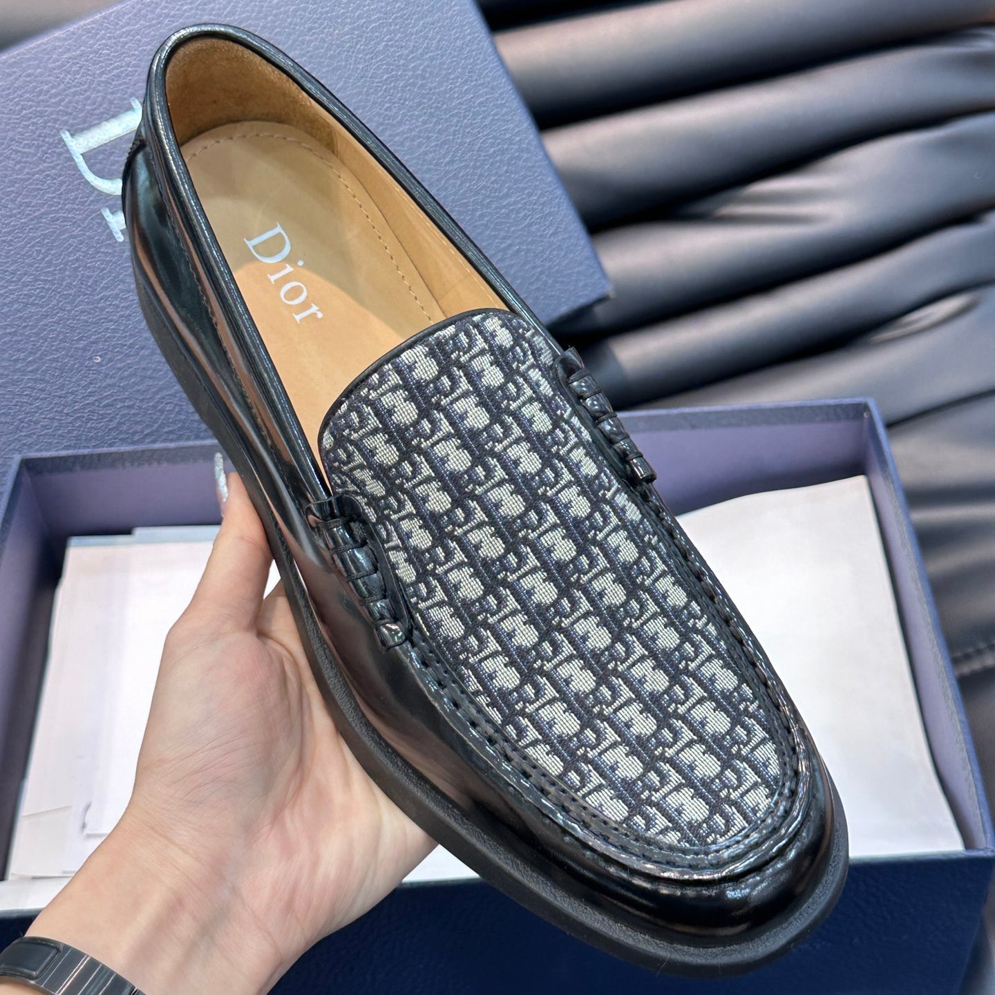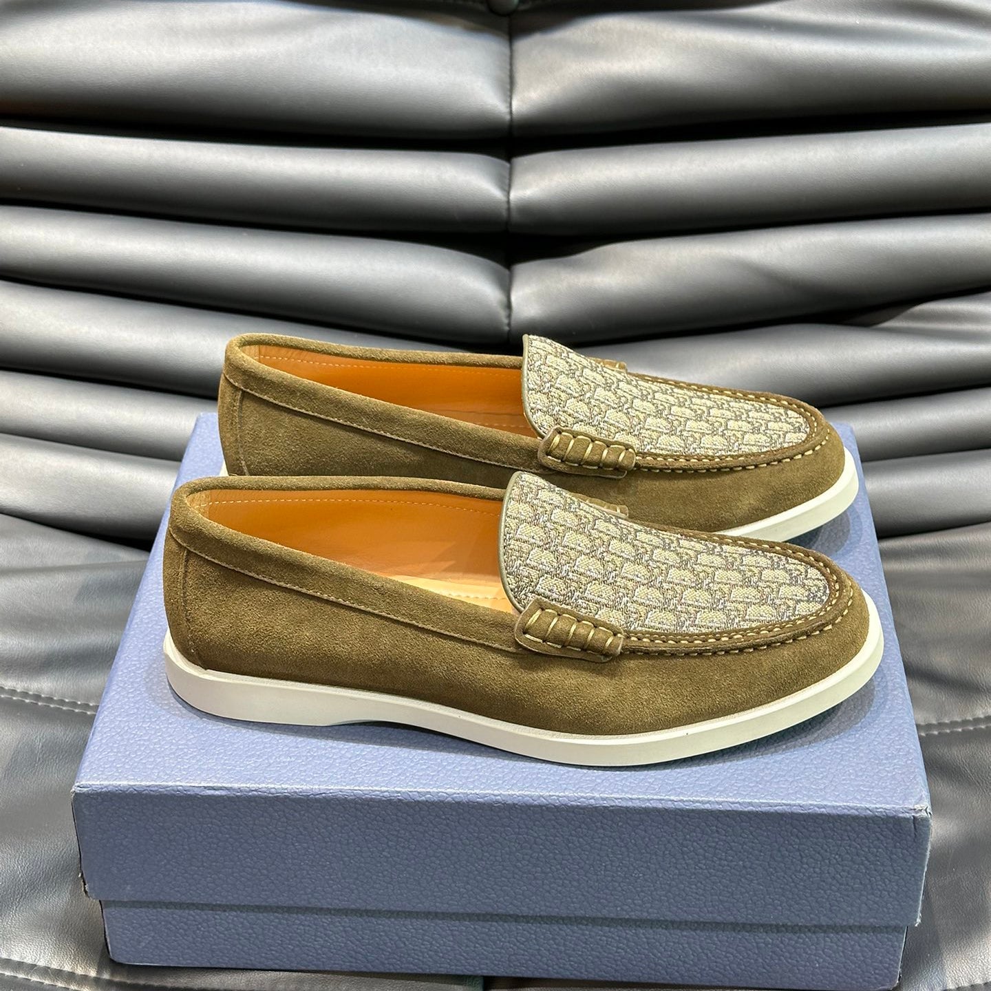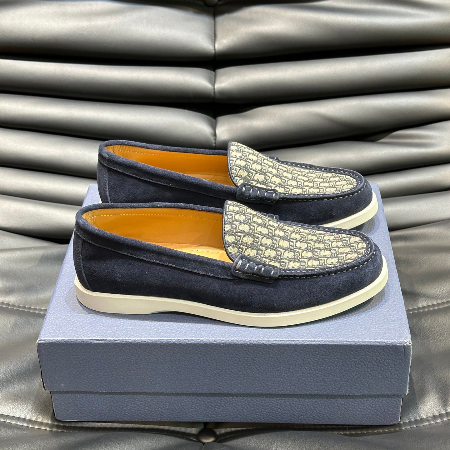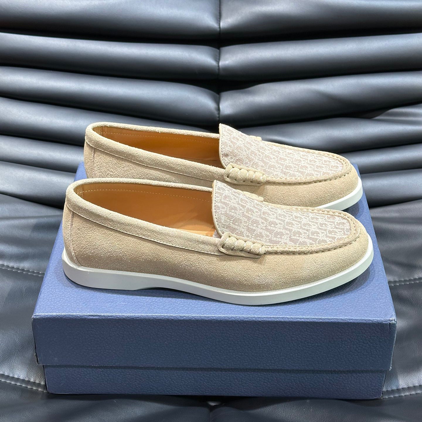 Classic printed canvas embellished men's casual loafers 1824042201