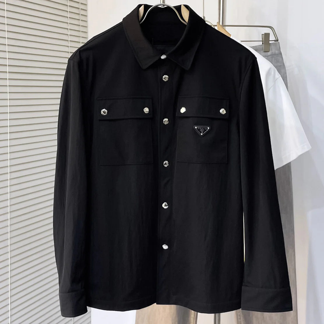 Fashion versatile ✨ Chest pocket embroidered triangle logo label design Using the original imported 100% cotton linen fabrics light thin feel soft and delicate comfortable on the body Customer for the original imported engraved hardware accessories accessories, OEM fine workmanship Line smooth, exquisite craftsmanship, version of the superb, casual with a very stylish and handsome 👍 Highly recommended Oh!
