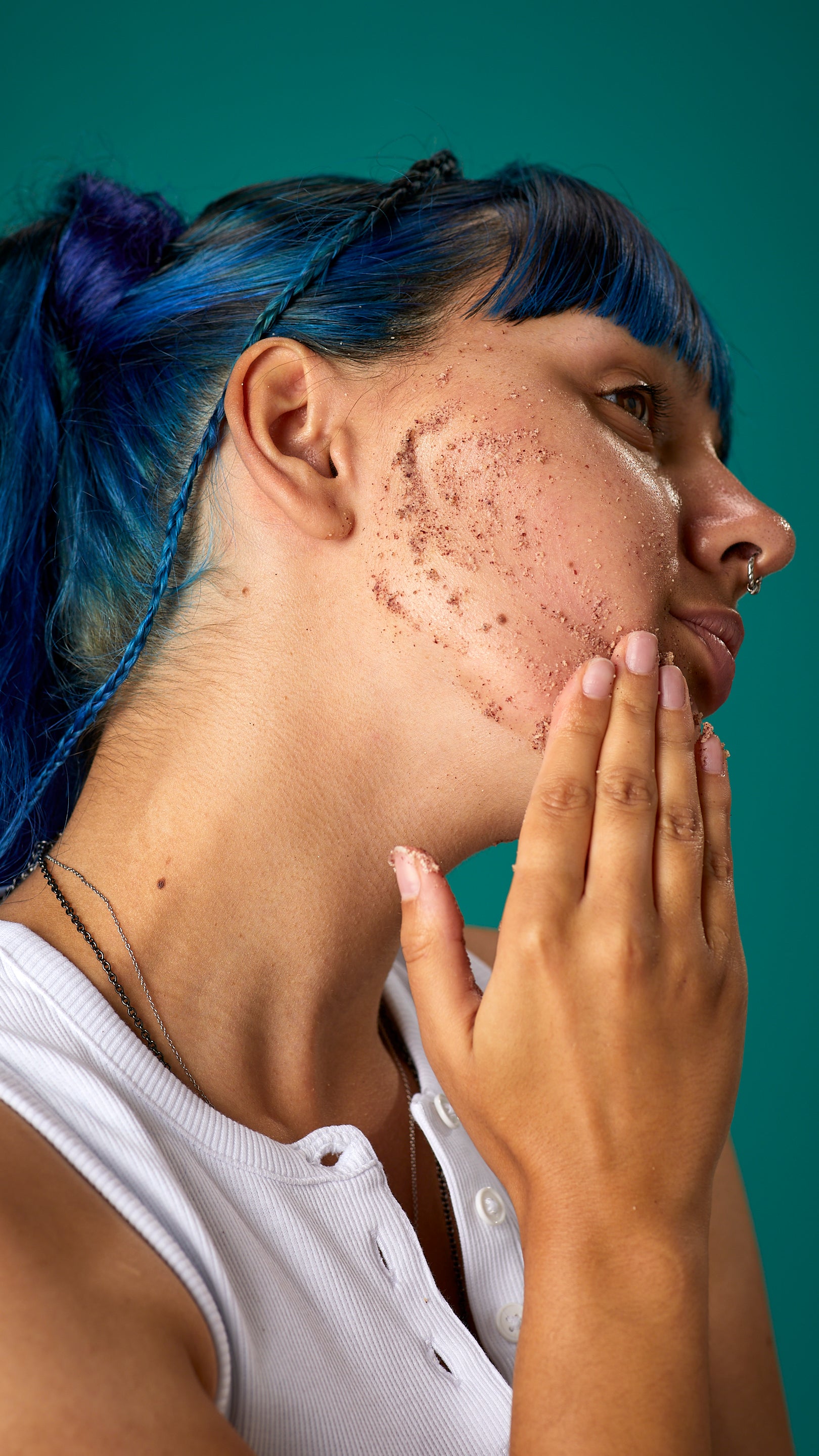- Add as little or as much water as you want to get the right consistency of exfoliation for your skin.