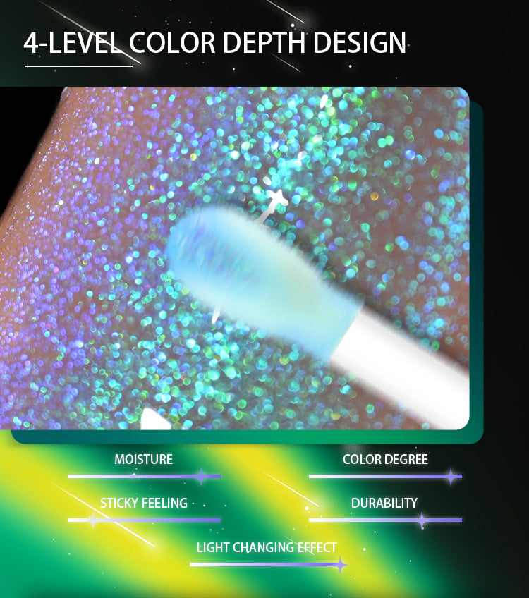 Chameleon Color Change Lip Gloss: The unrivaled three tone multichrome finish takes your lips to the next dimension with color changing technology innovations and liquid structure, creating a personalized shade just for you.