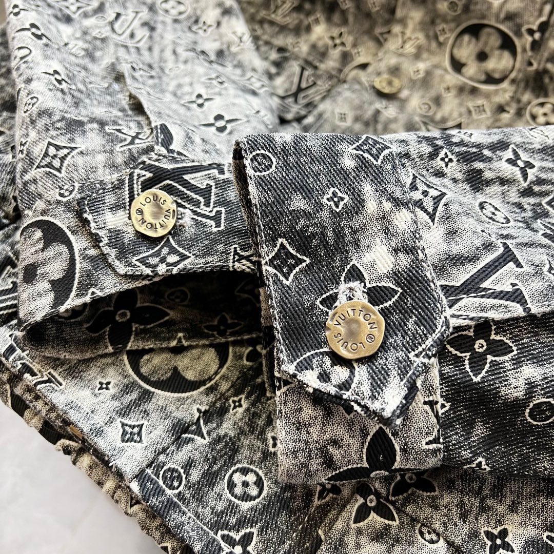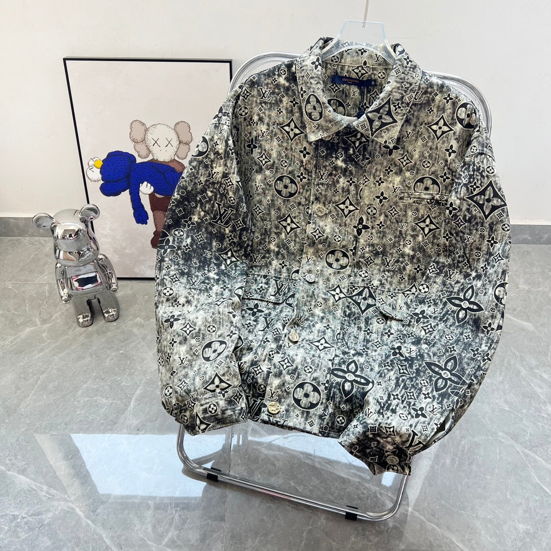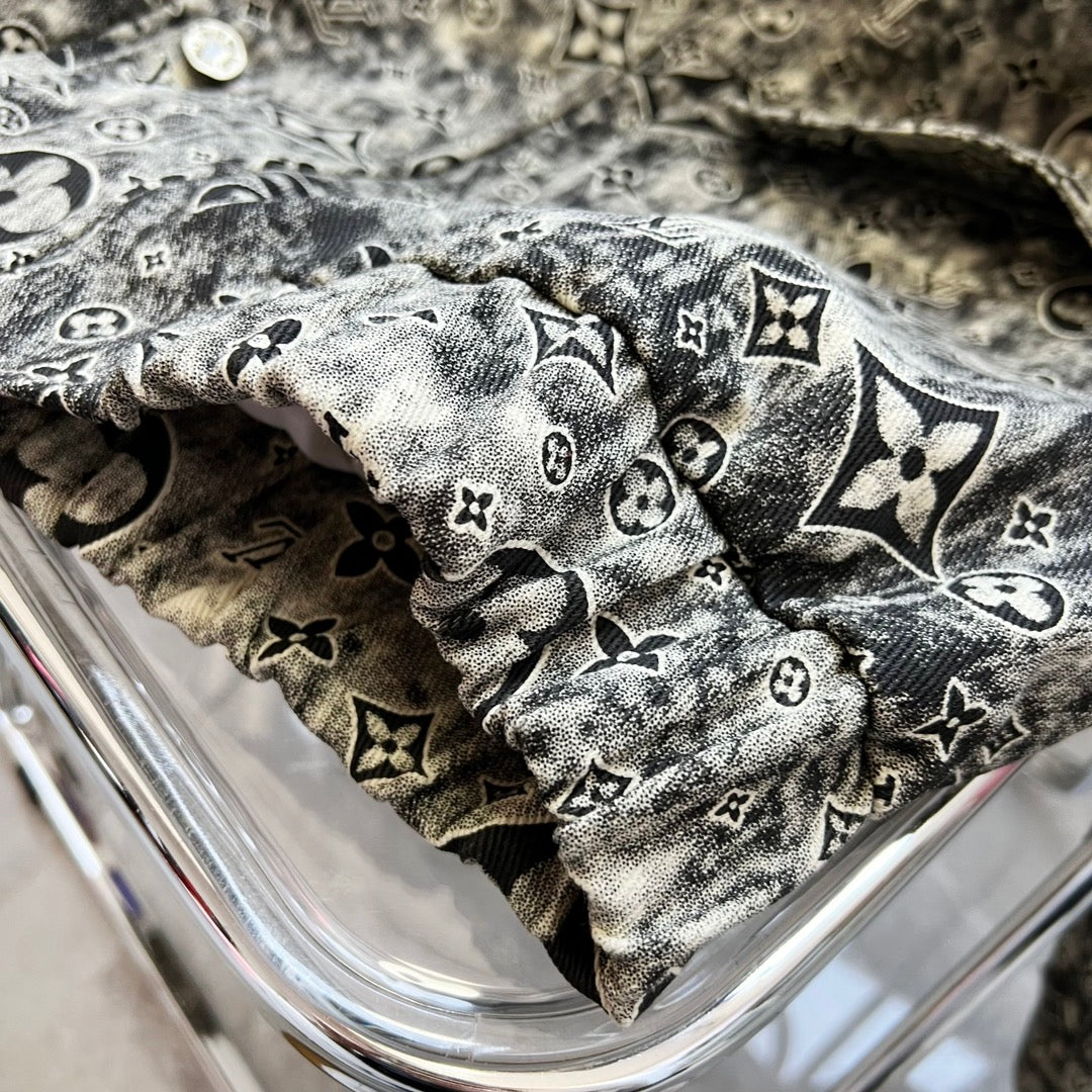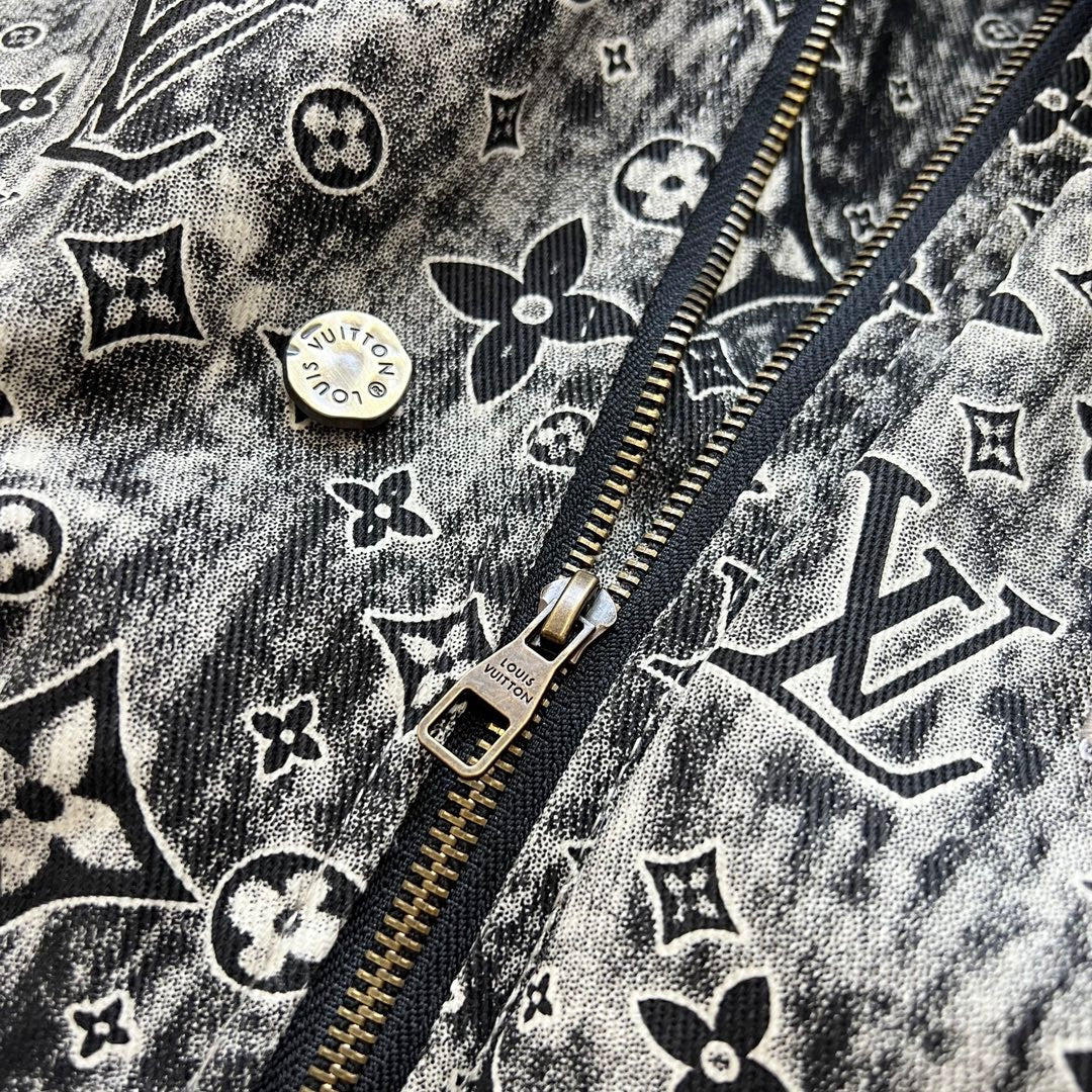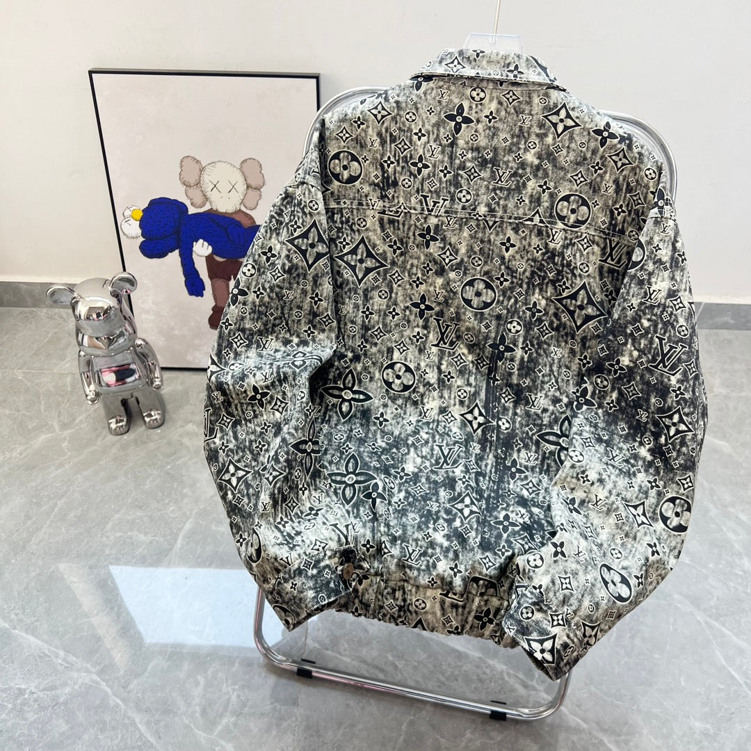 Dark pattern distressed old flower all over printed denim jacket XC0823110310