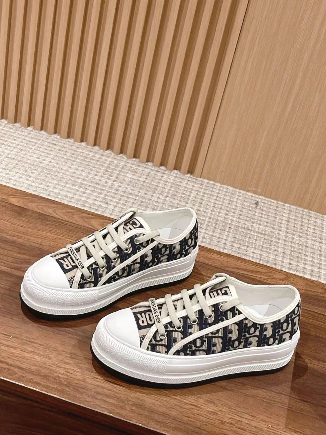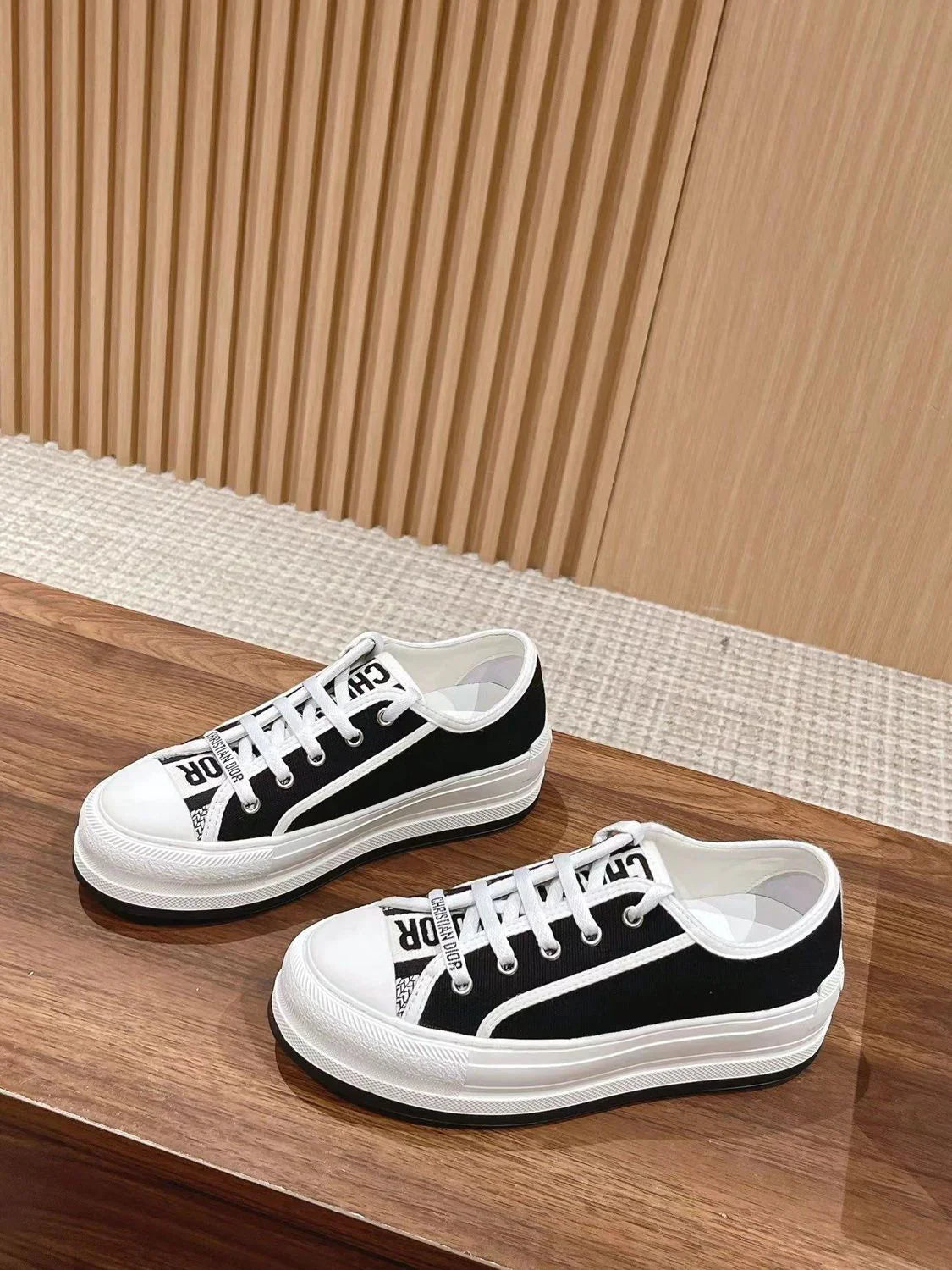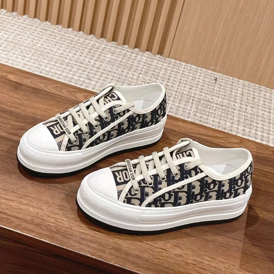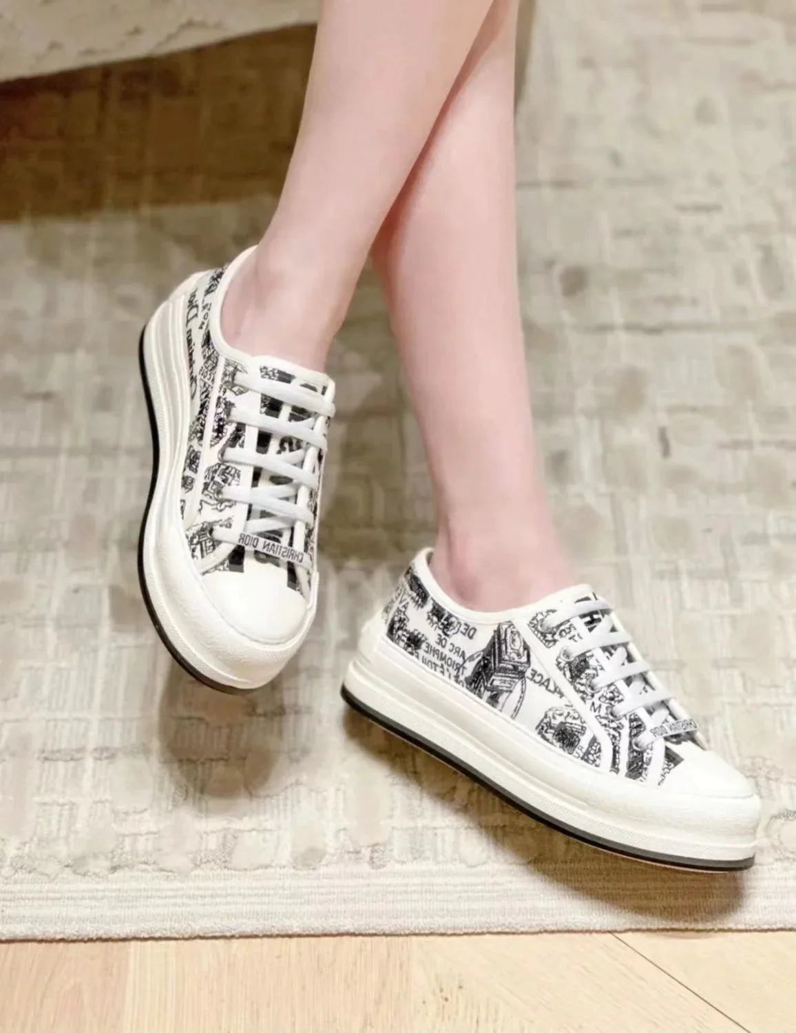 Embroidered Canvas New Genuine Leather Height Increased Thick-soled All-match Casual SneakersPD052412403