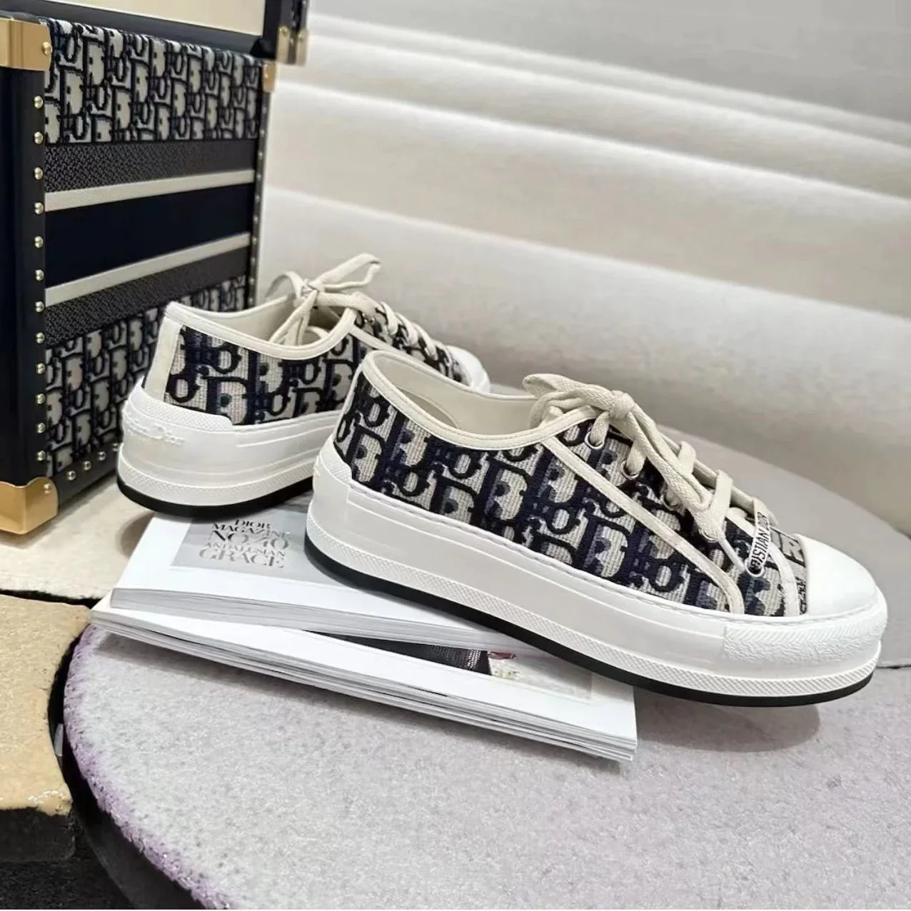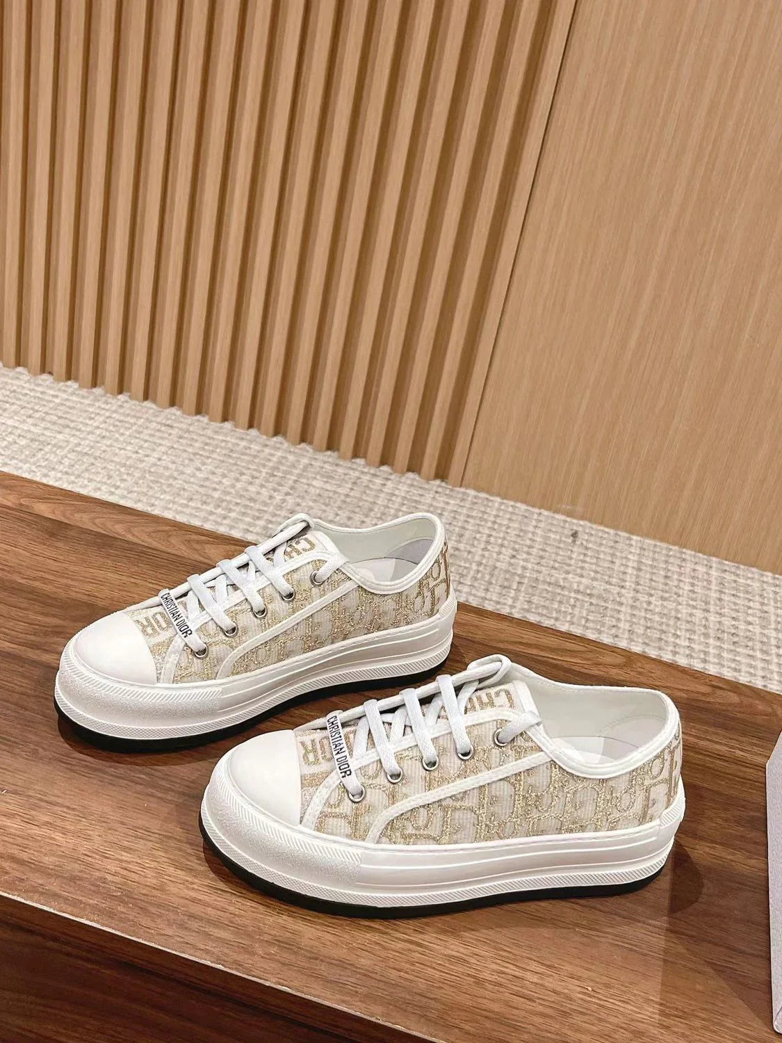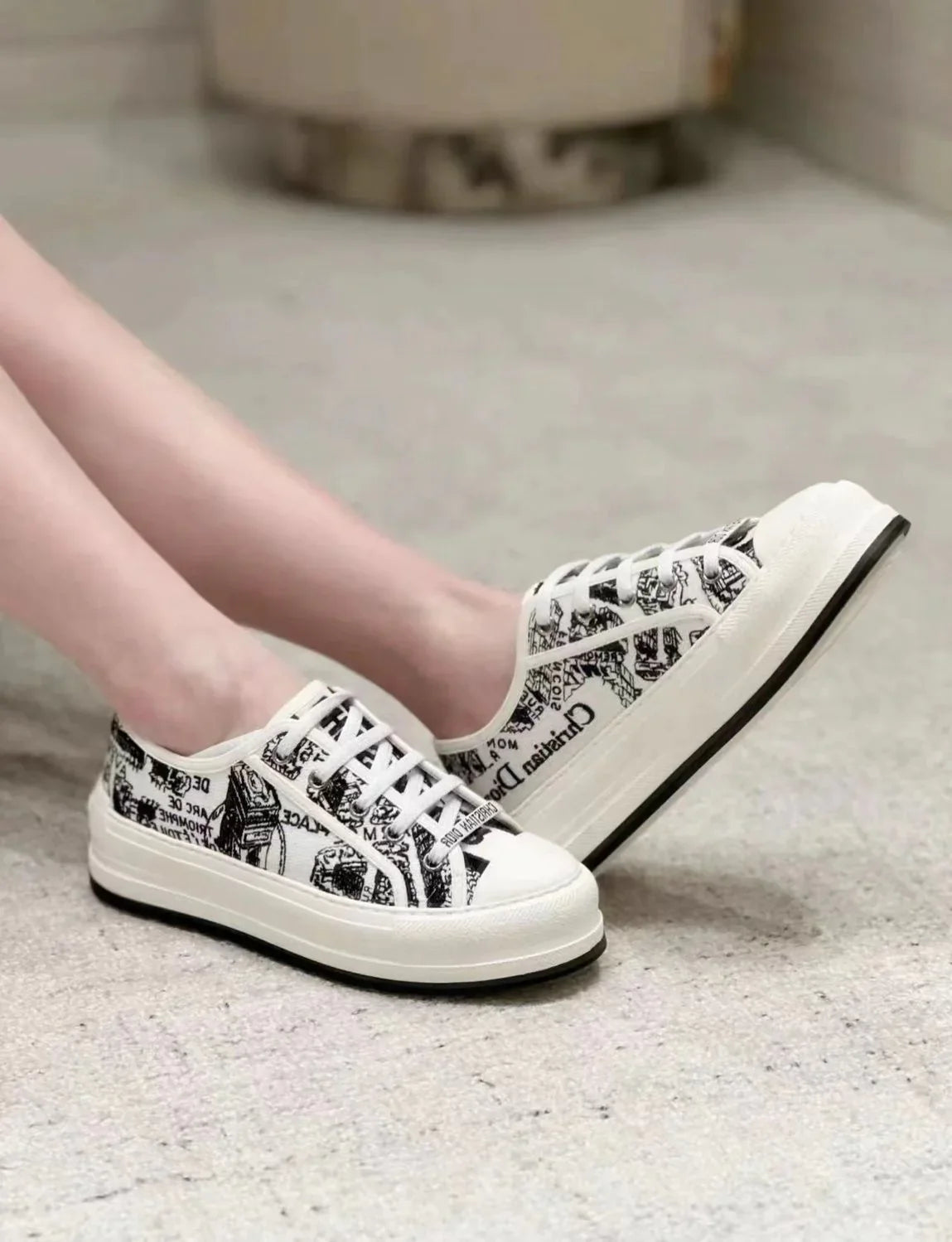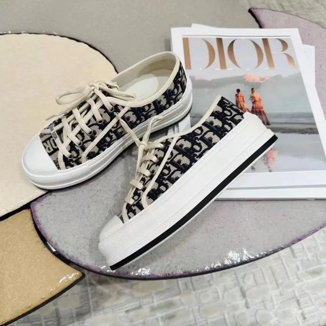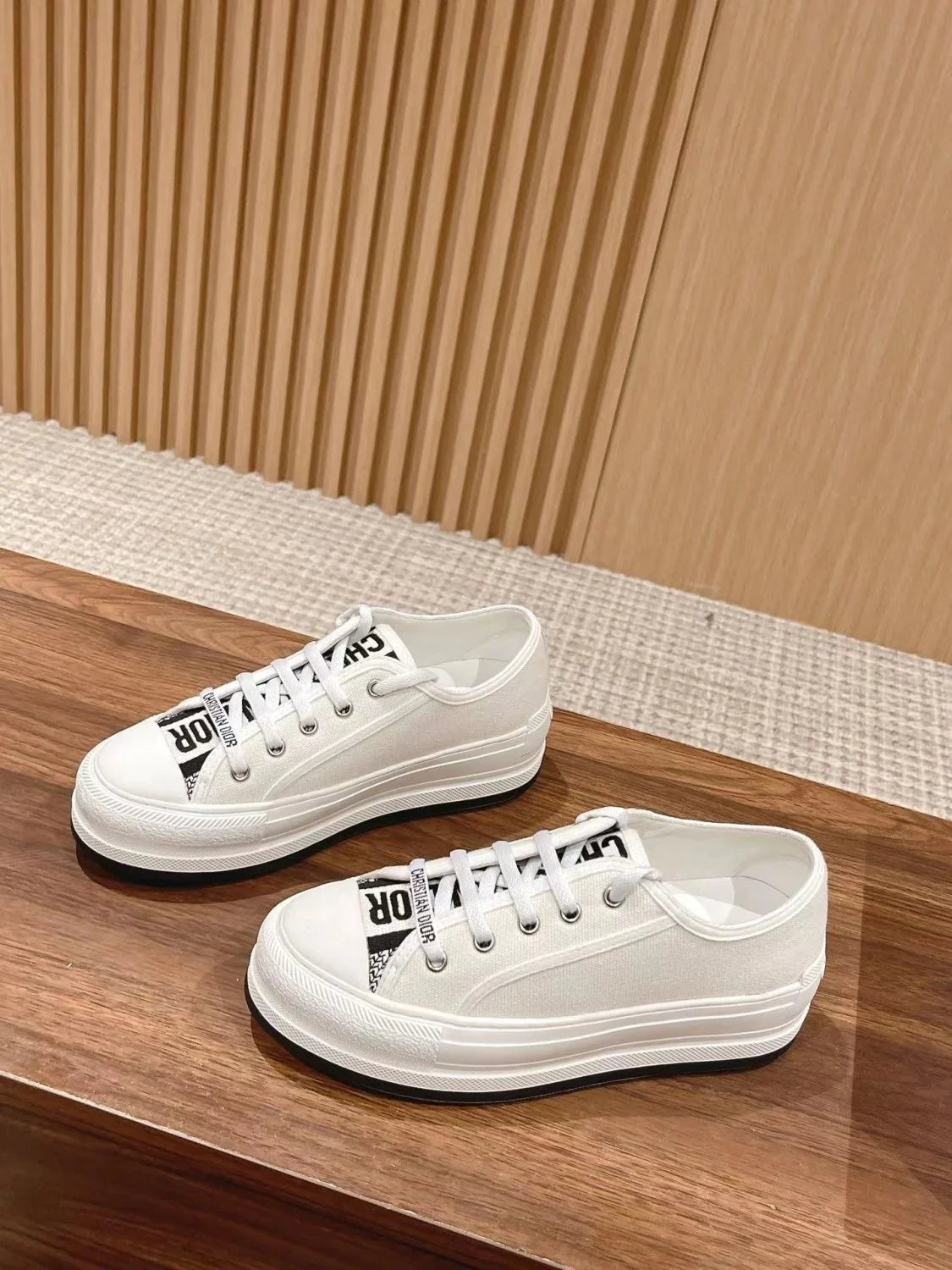 Embroidered Canvas New Genuine Leather Height Increased Thick-soled All-match Casual SneakersPD052412403