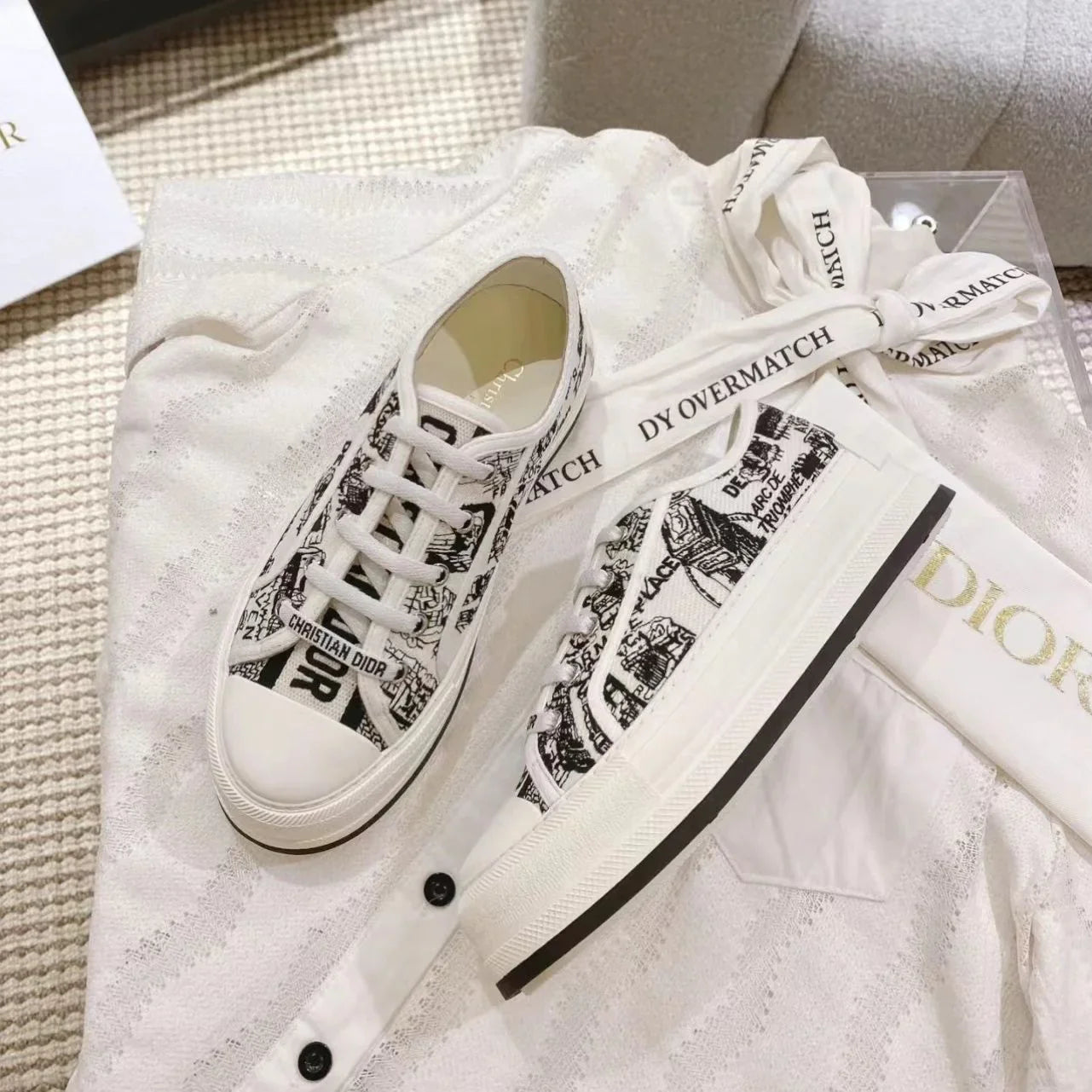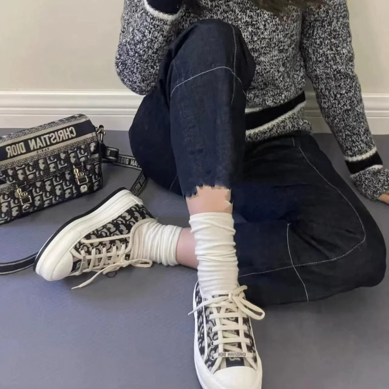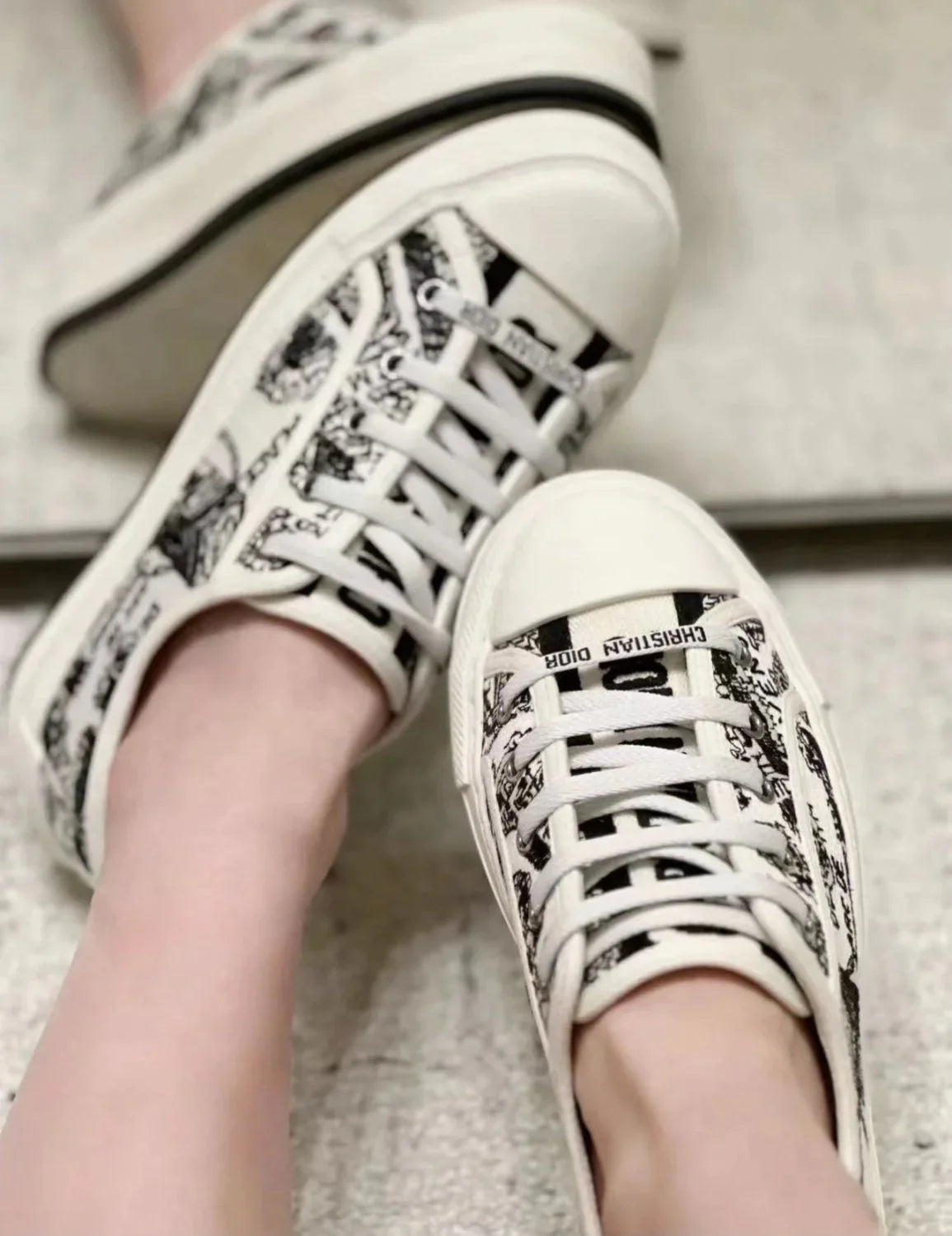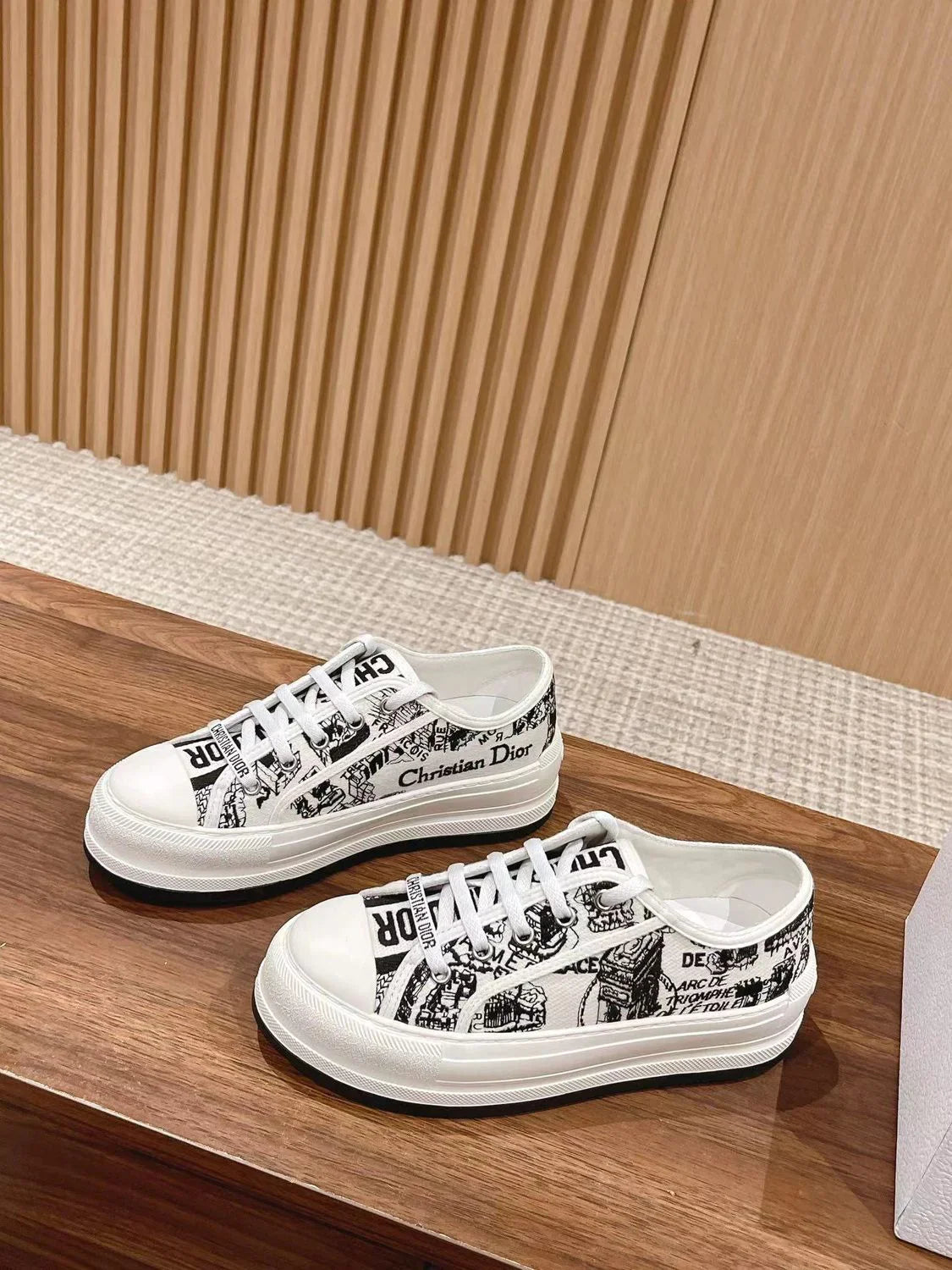 Embroidered Canvas New Genuine Leather Height Increased Thick-soled All-match Casual SneakersPD052412403