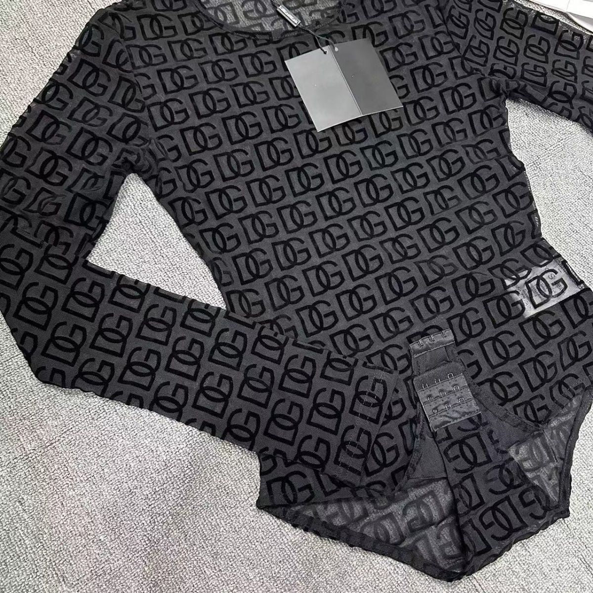 Low Neck Outer Wear Thin Mesh Hollow Base Shirt 1024032127