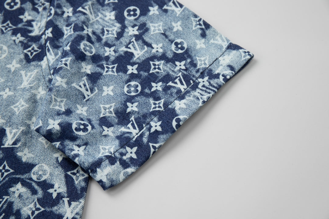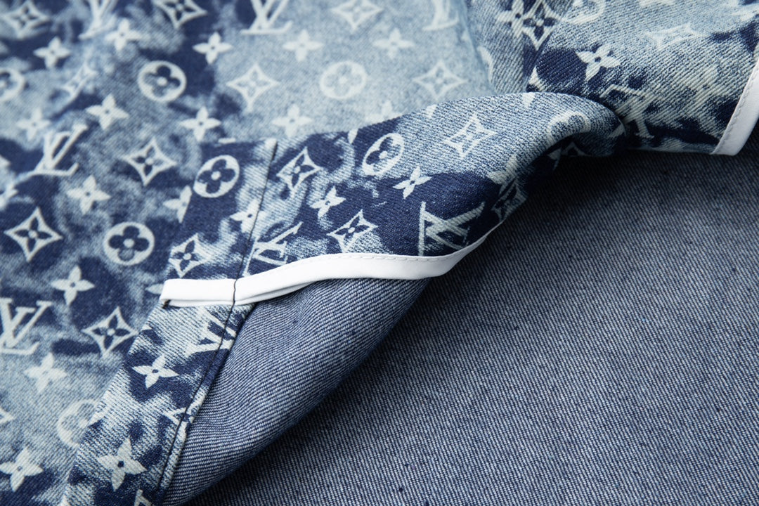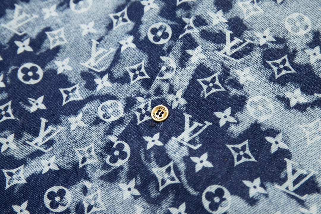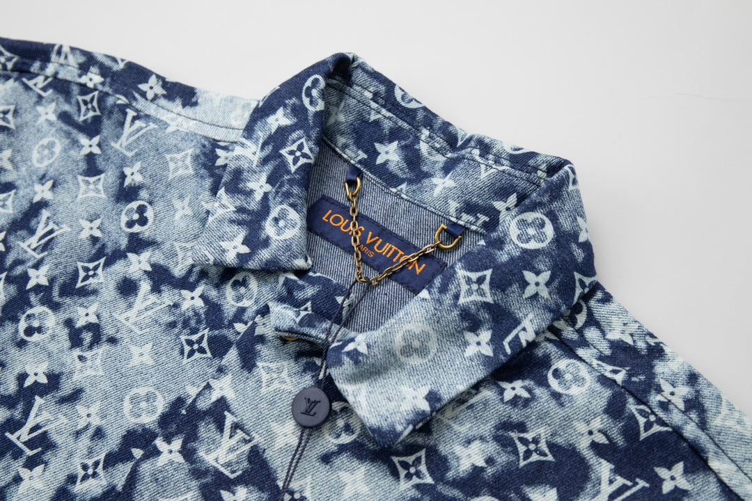 2025 SS Spring/Summer current heavy denim shirt, custom pattern washed fabric. Full of classic monogram logo, engraved fine hardware buttons, loose fit
