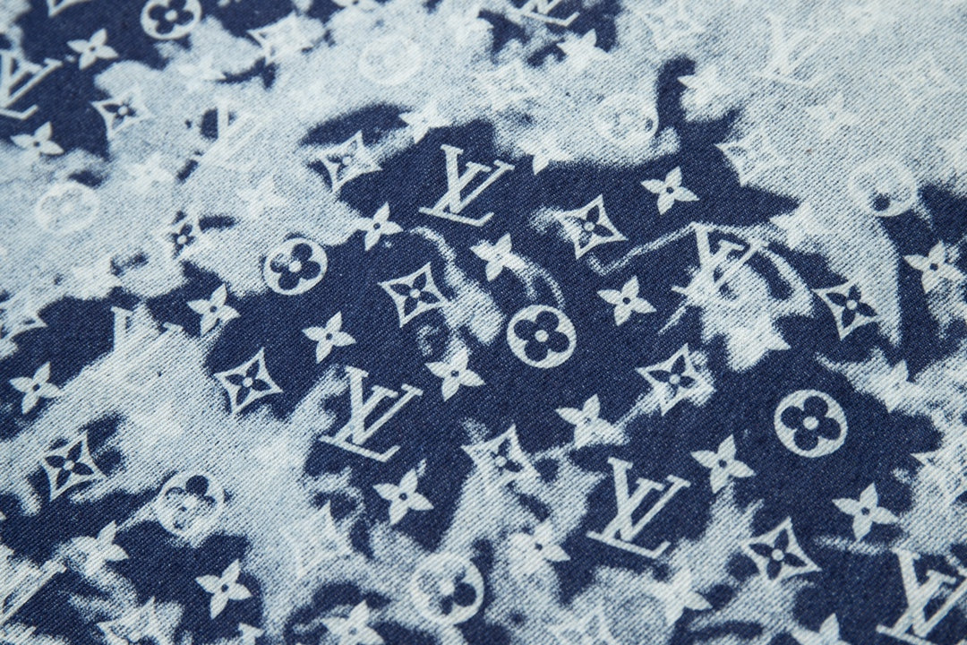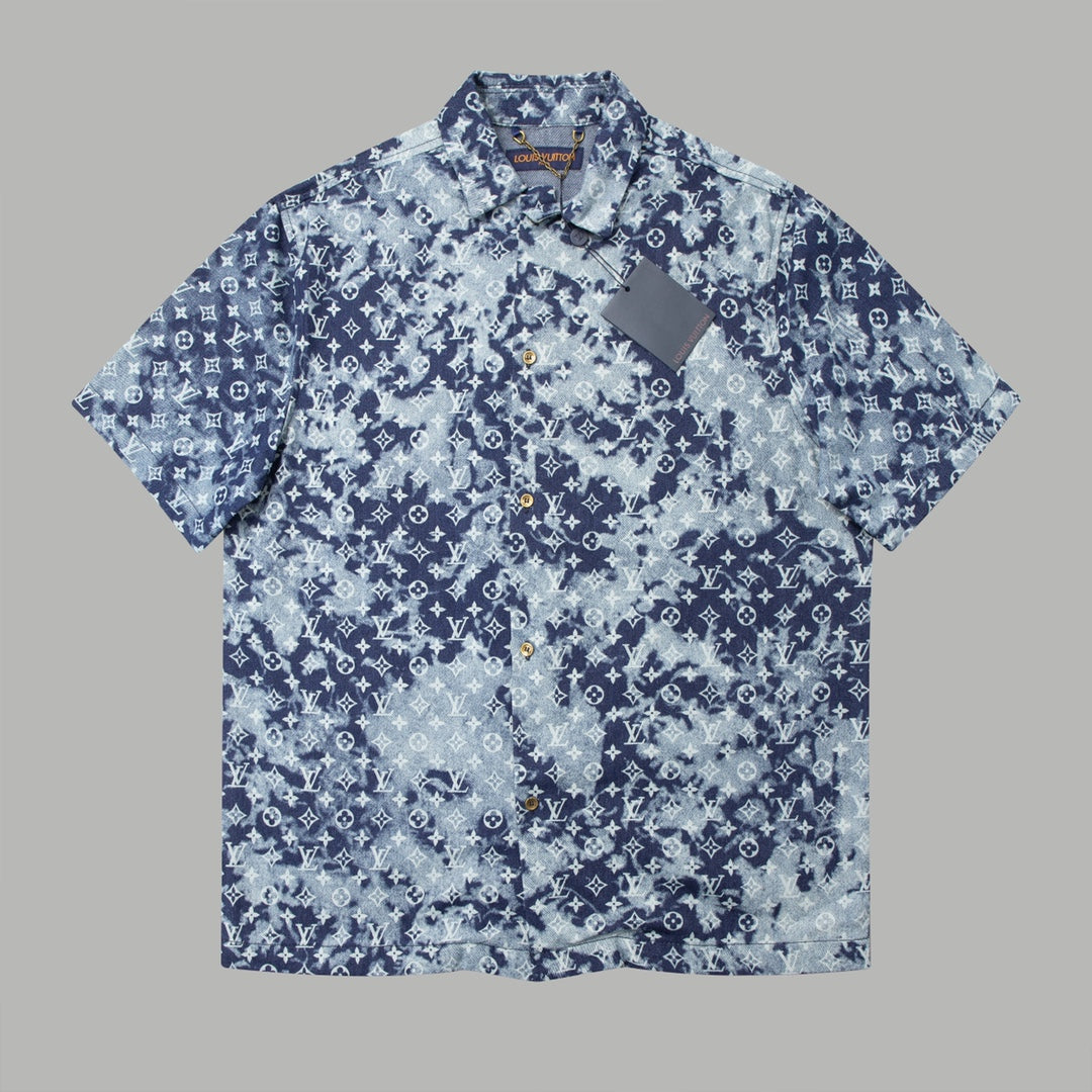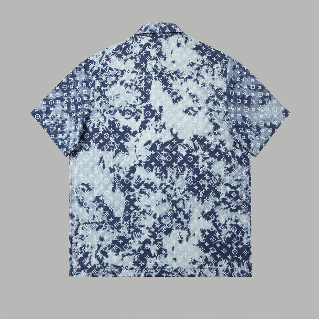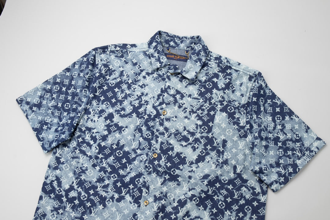 2025 SS Spring/Summer current heavy denim shirt, custom pattern washed fabric. Full of classic monogram logo, engraved fine hardware buttons, loose fit
