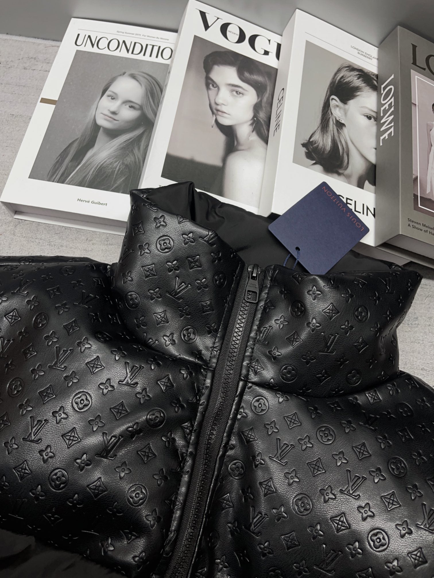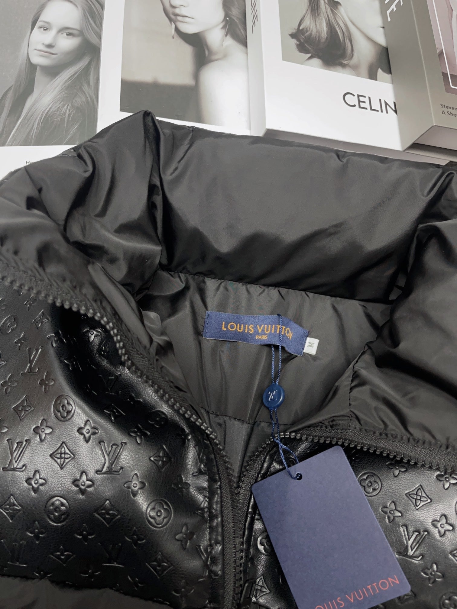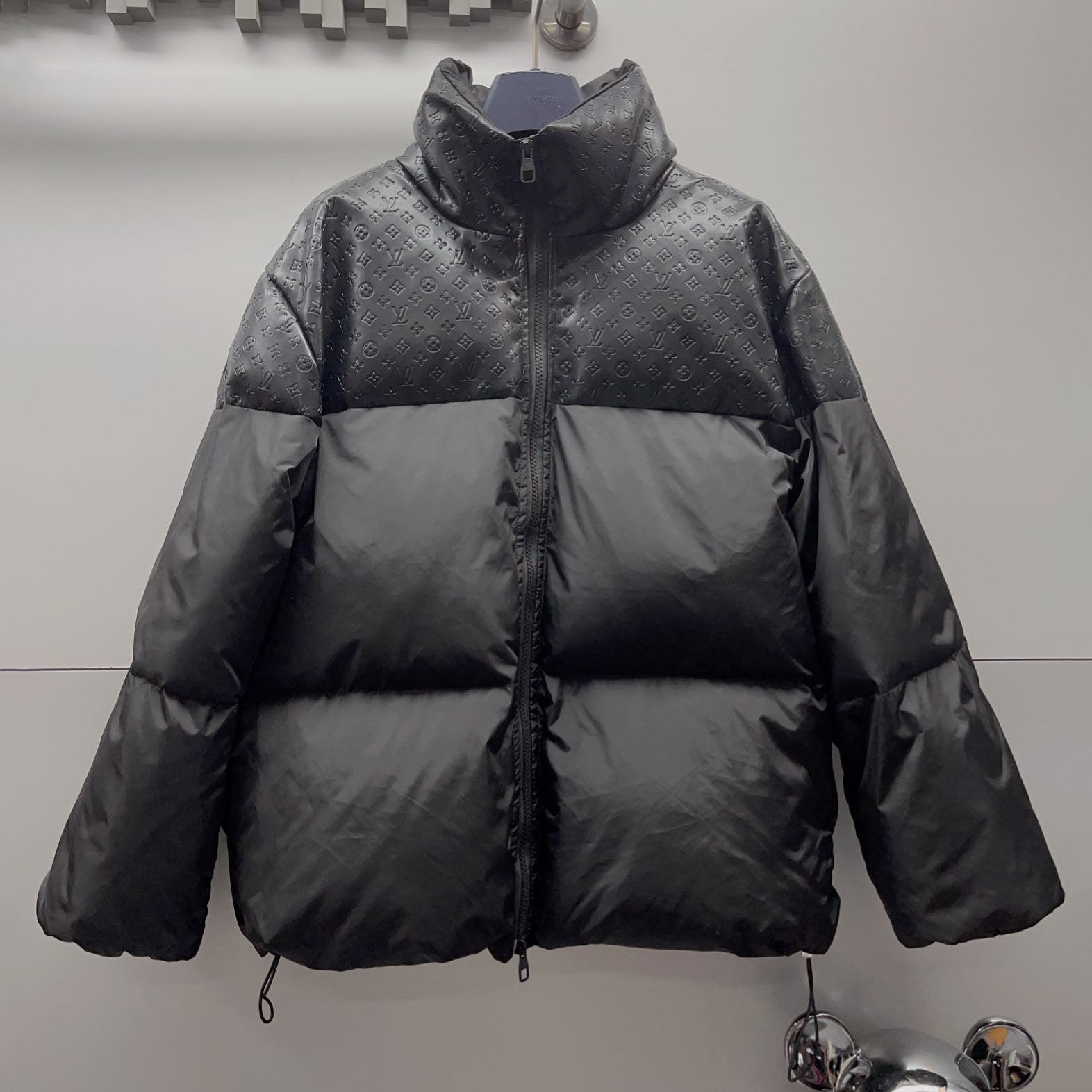 LV Embossed leather panelled stand collar down jacket 1824092904