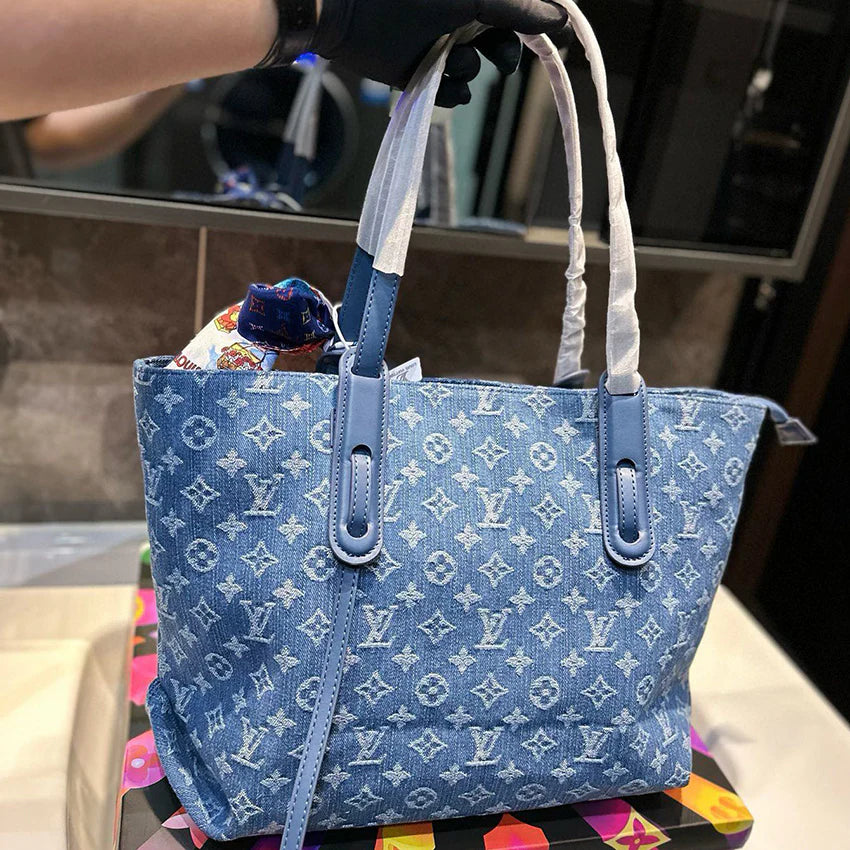 New casual versatile denim embroidered shoulder handbag 1024070902