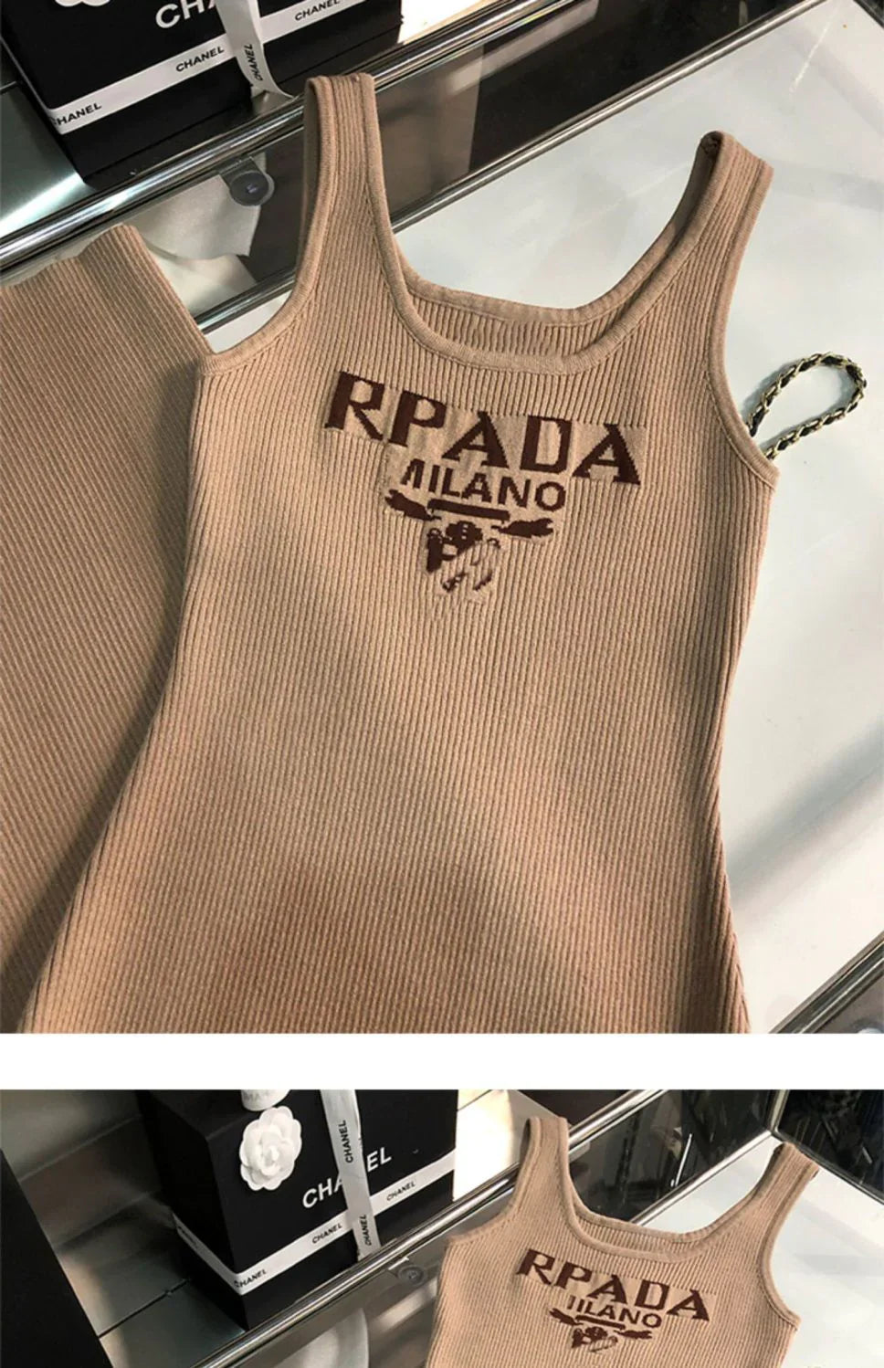 New Fashion All-match Ice Silk Knitted Sling Dress 1024040306