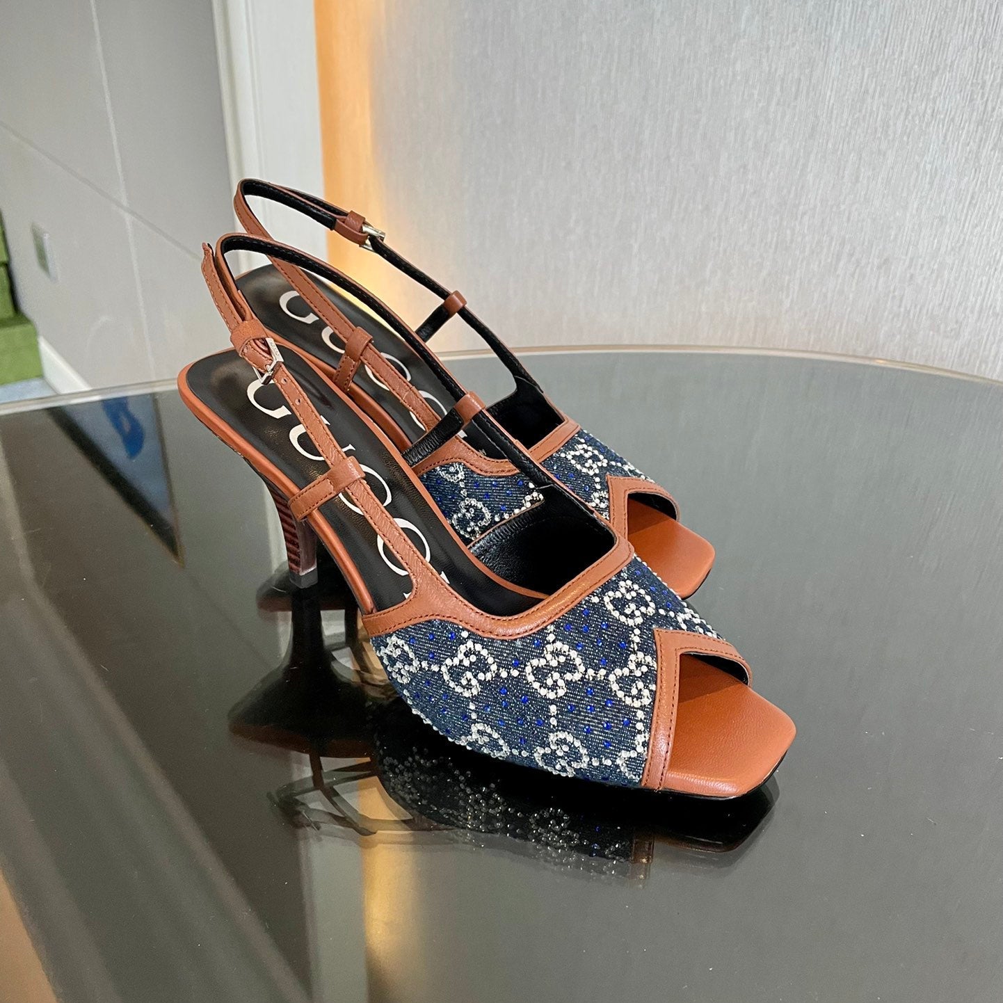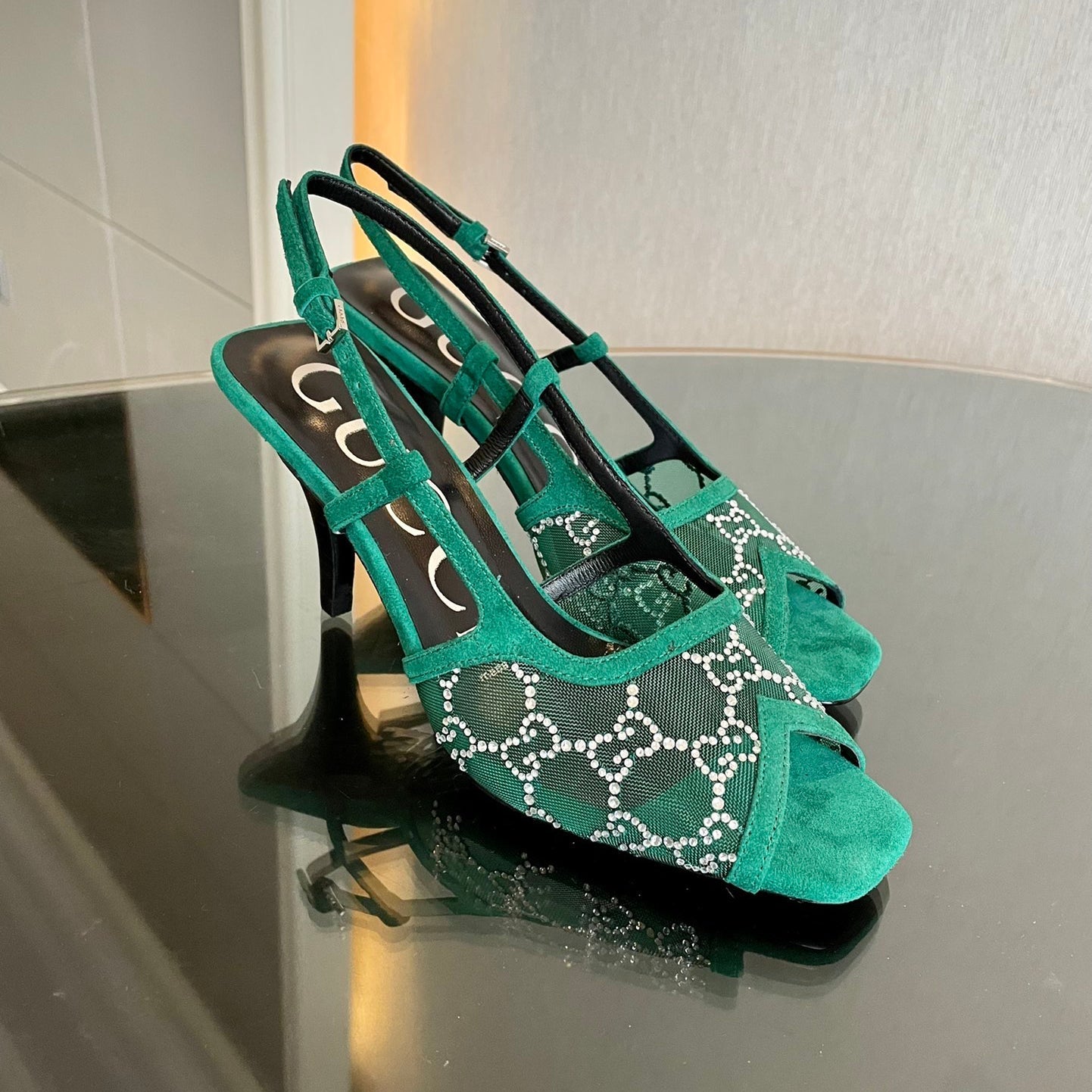 New G logo mesh rhinestone high-heeled sandals XC16060702