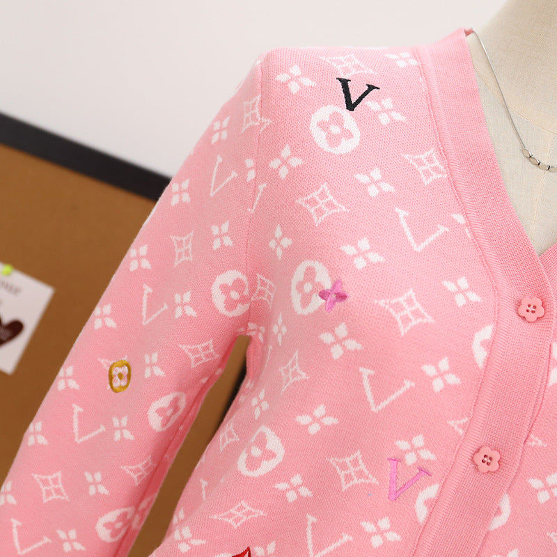 New Letter Jacquard V-Neck Knit Cardigan for Women 1025090207