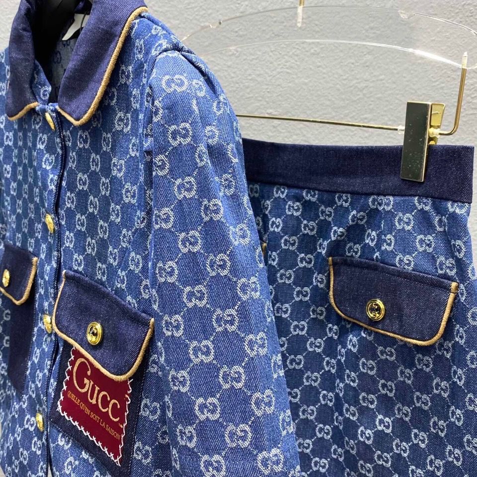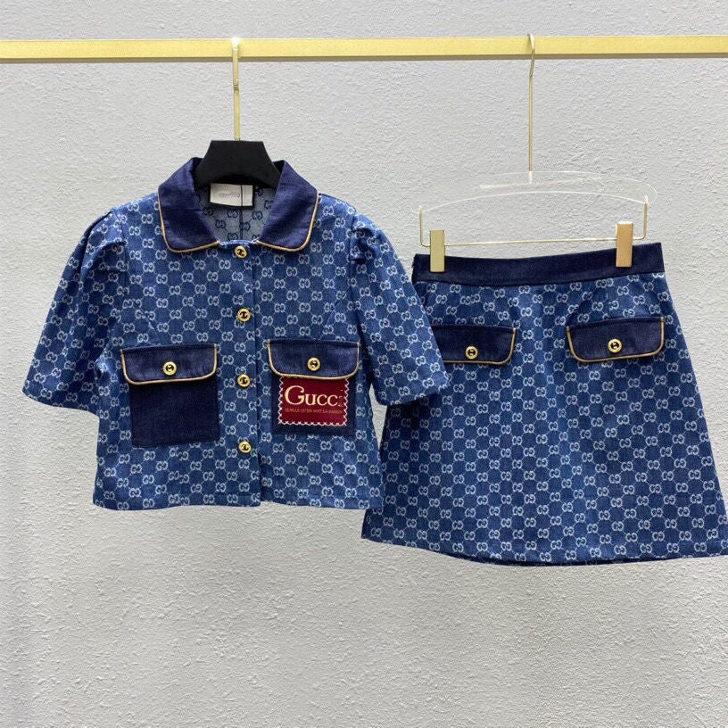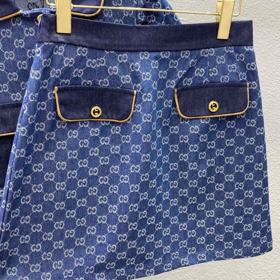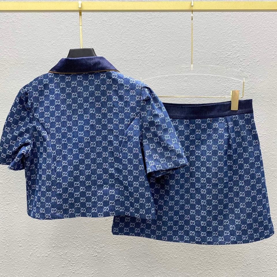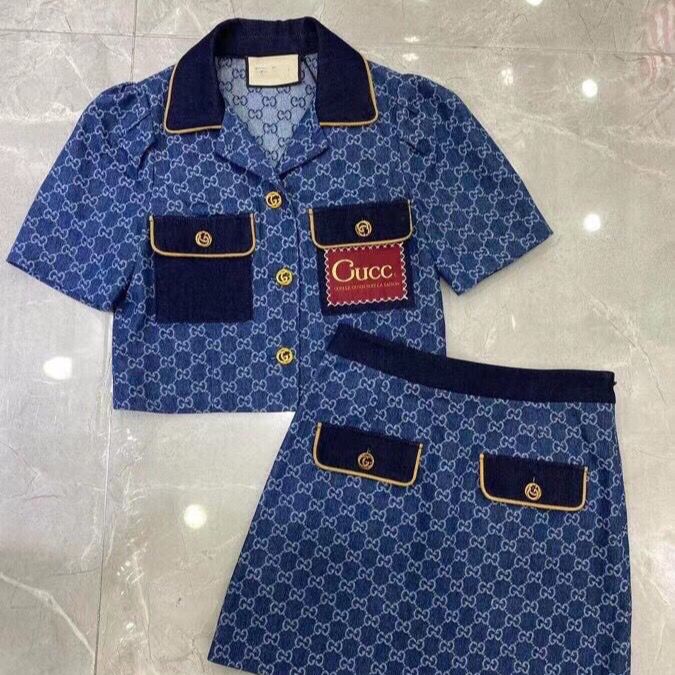 New spring and summer lapel short top + skirt jacquard monogram full print short sleeve coat
