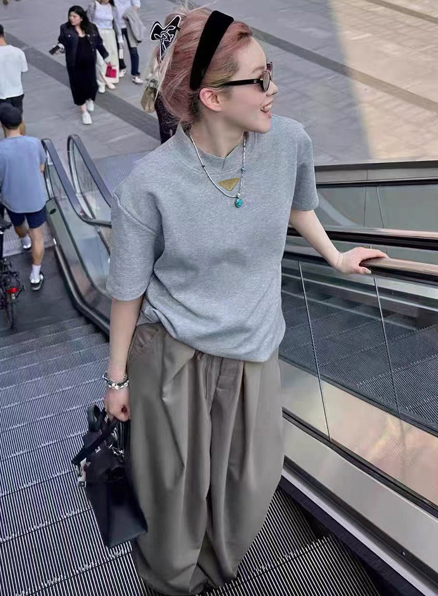 PR Liquid ammonia cotton petal collar straight shoulder T-shirt 1825052002