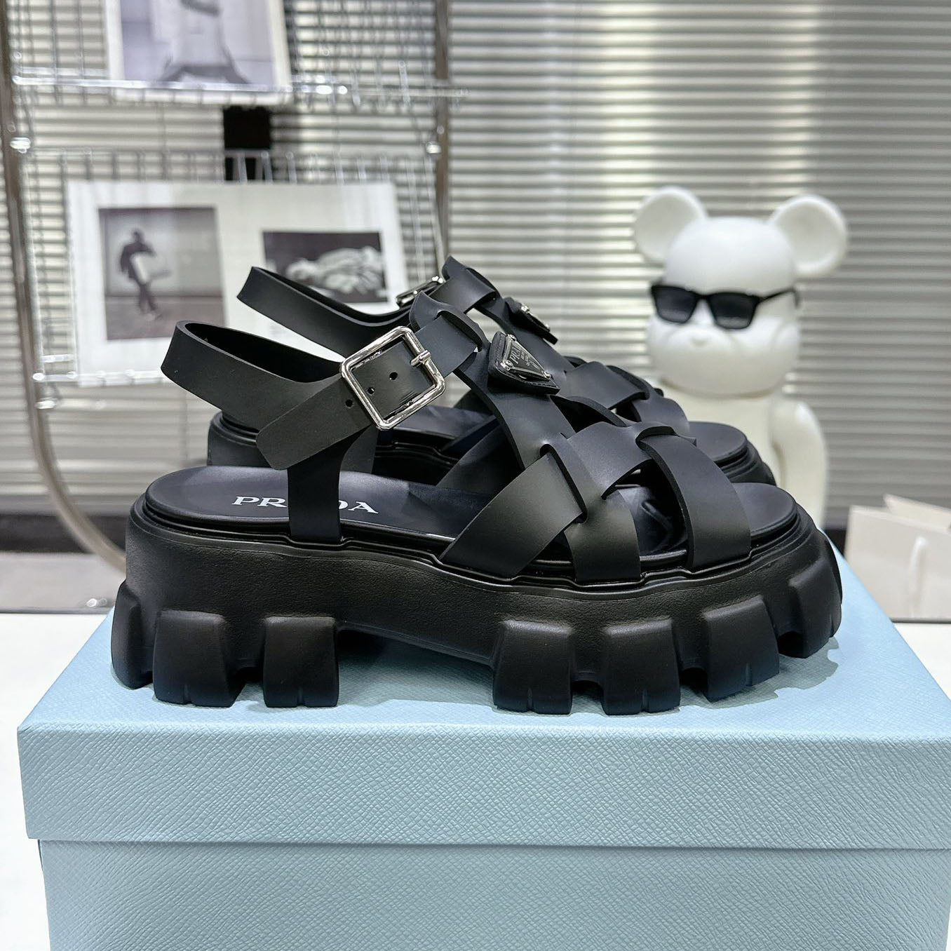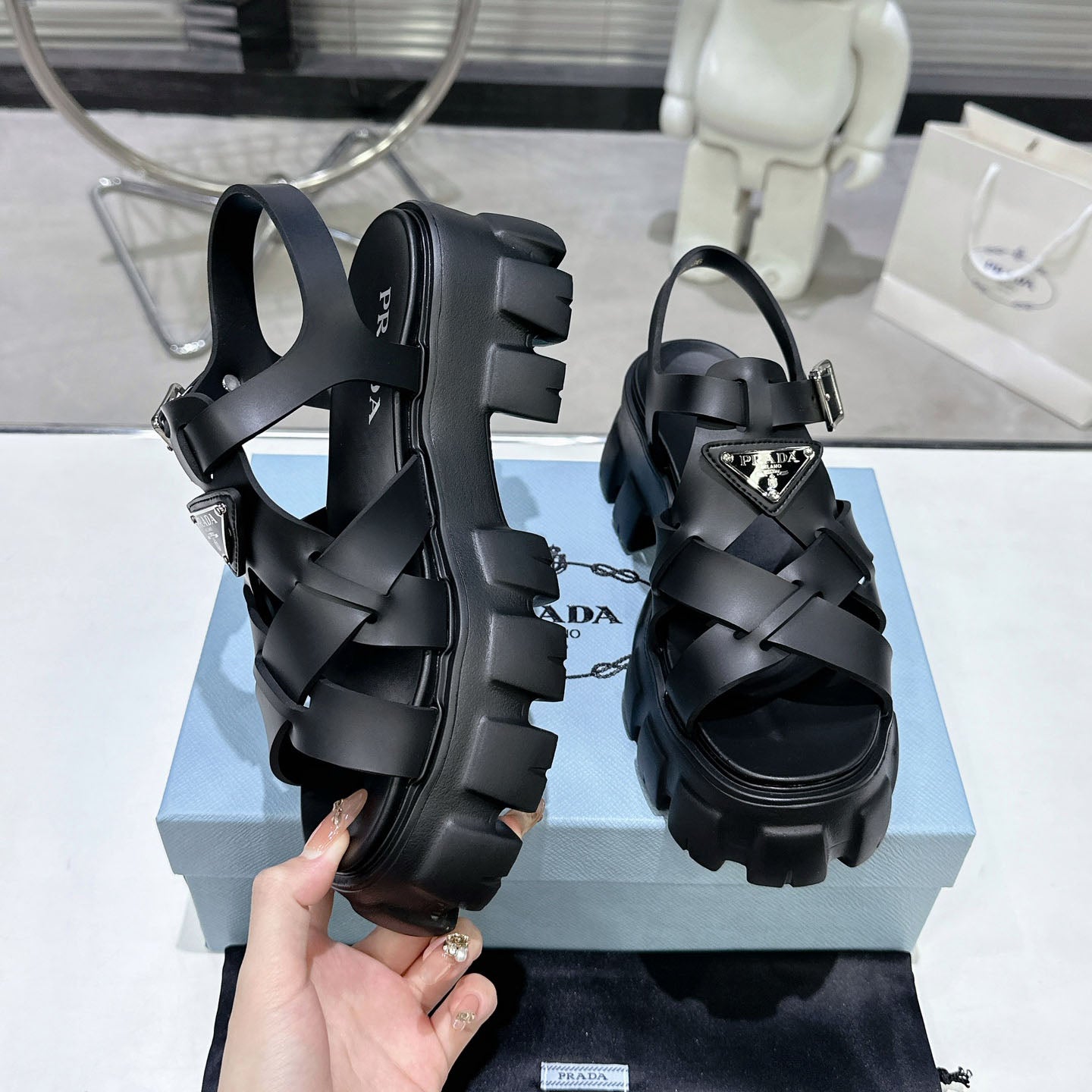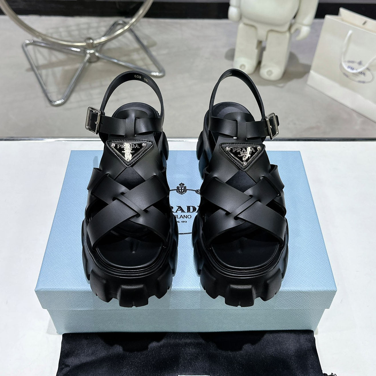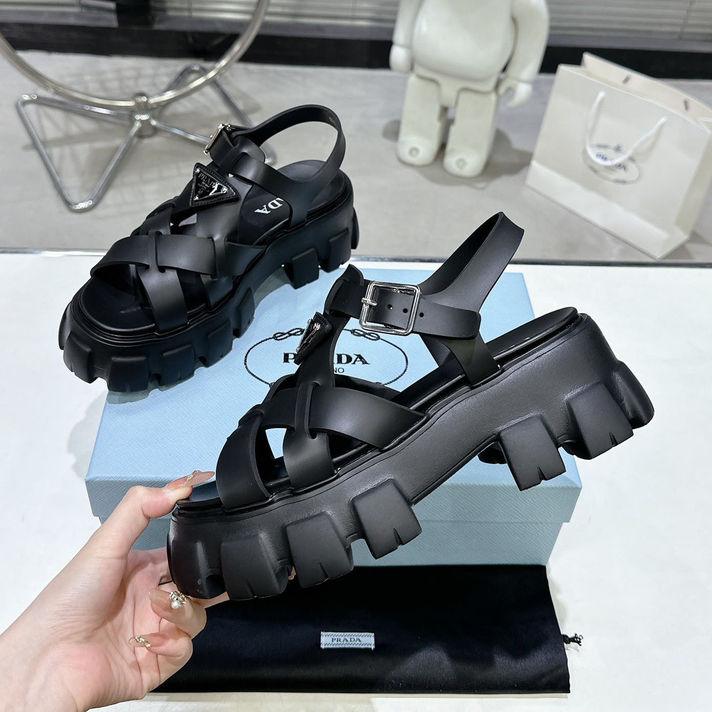 PRD triangle buckle sawtooth Roman woven platform rubber sandals 1824071010