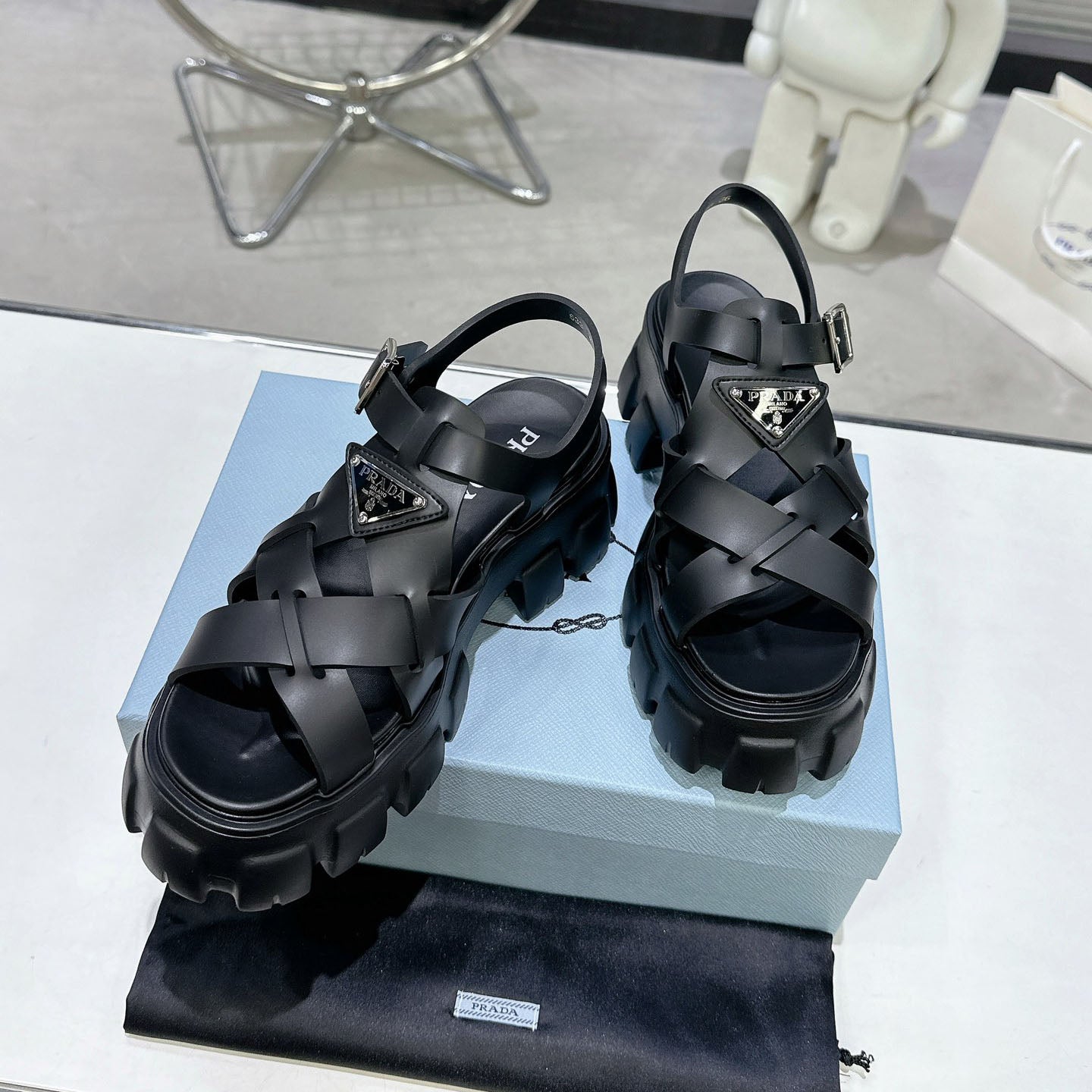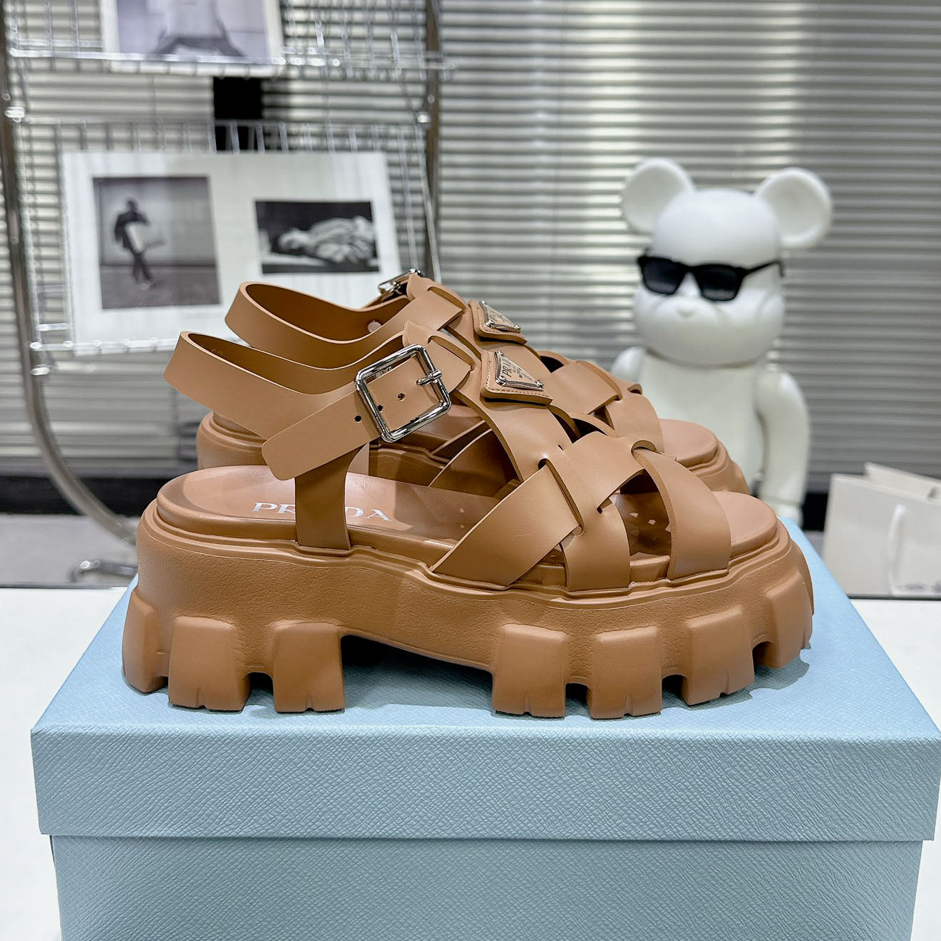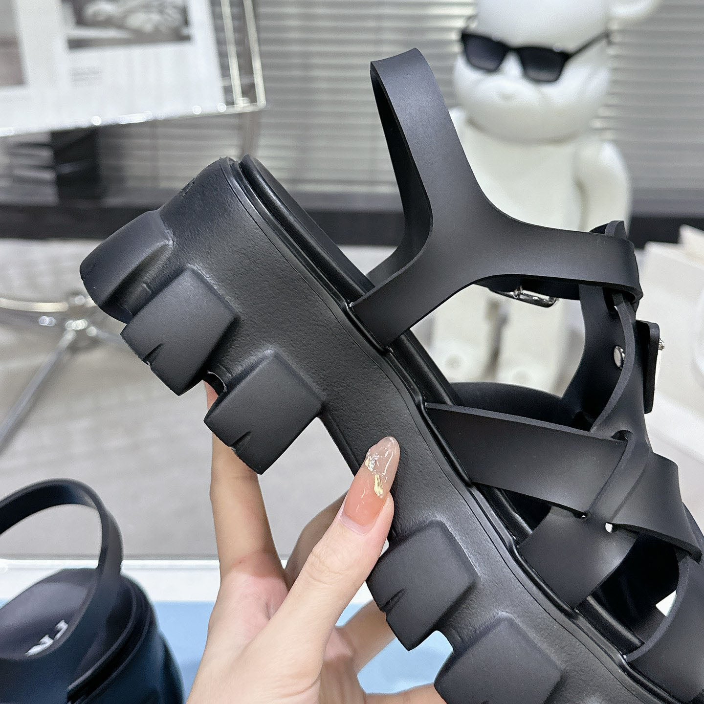 PRD triangle buckle sawtooth Roman woven platform rubber sandals 1824071010