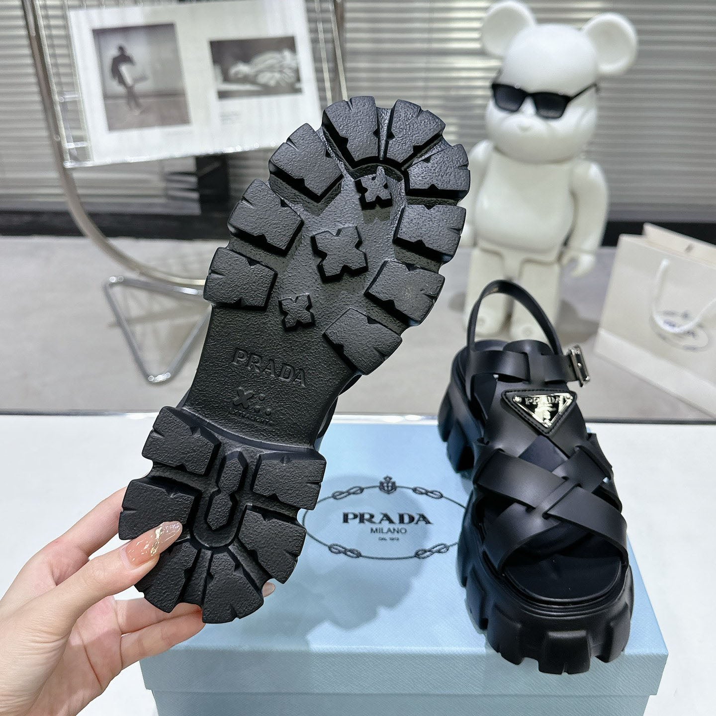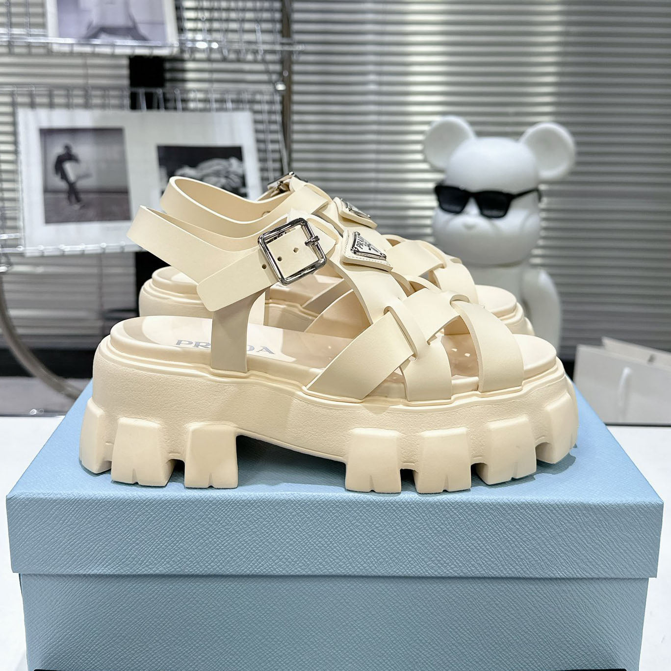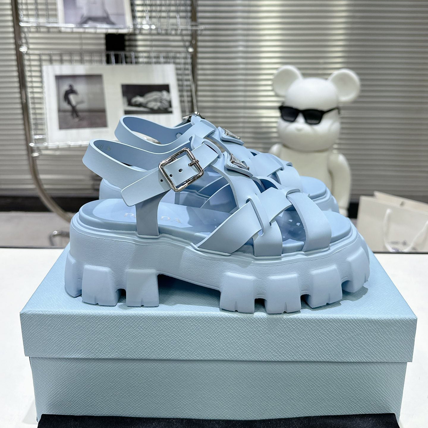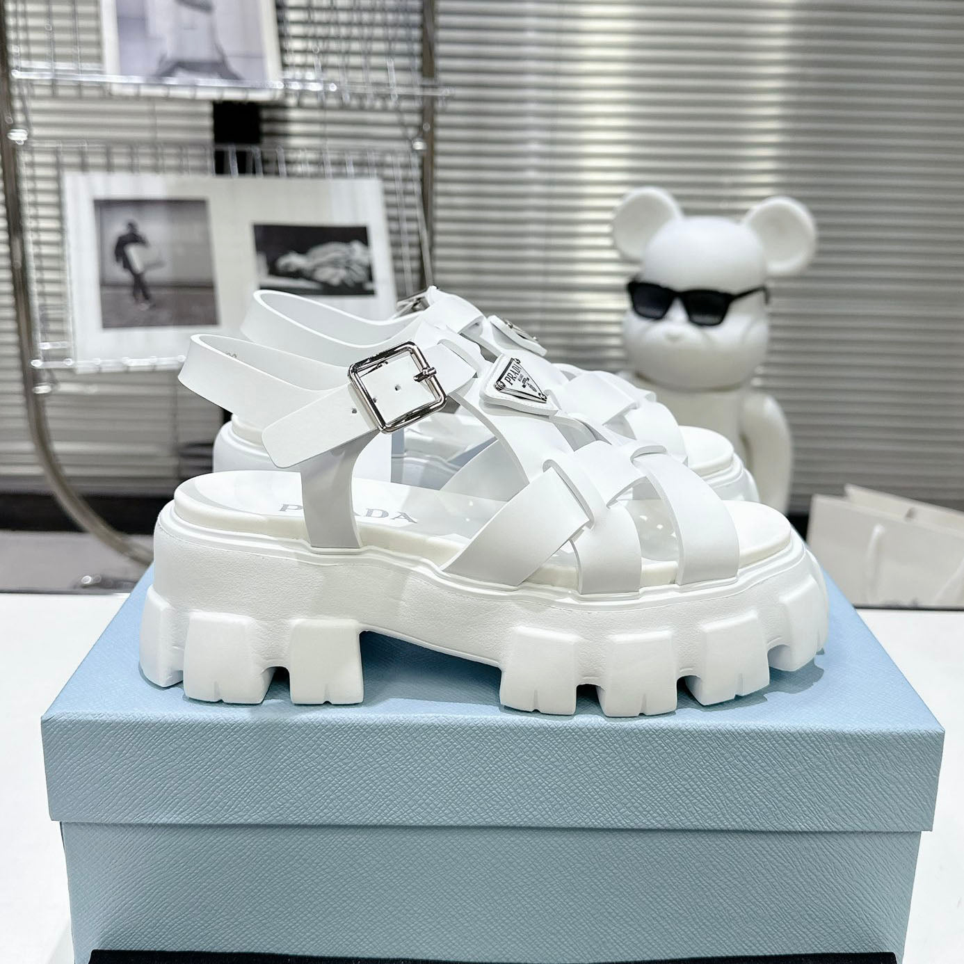 PRD triangle buckle sawtooth Roman woven platform rubber sandals 1824071010