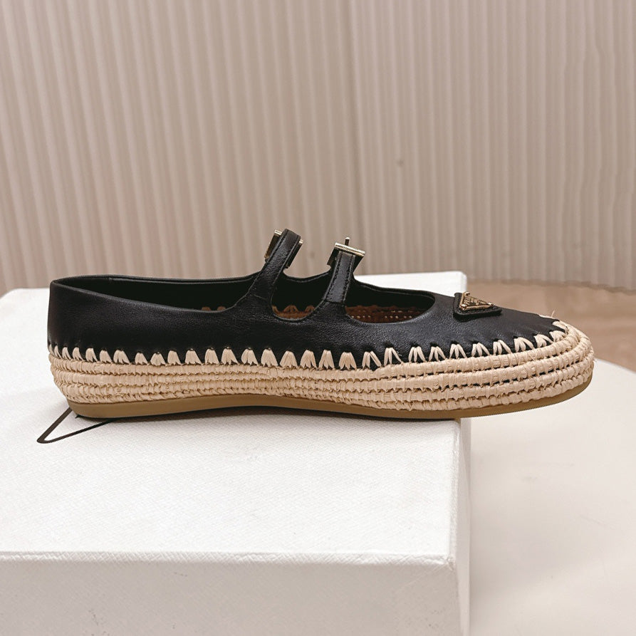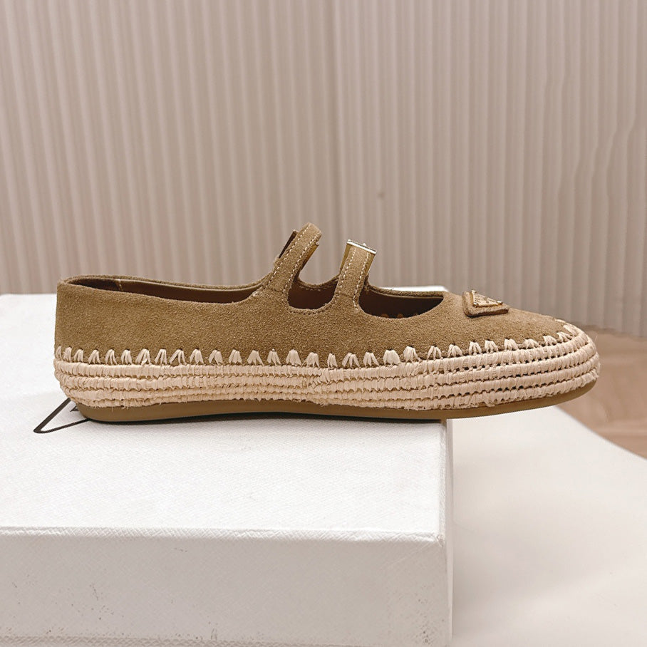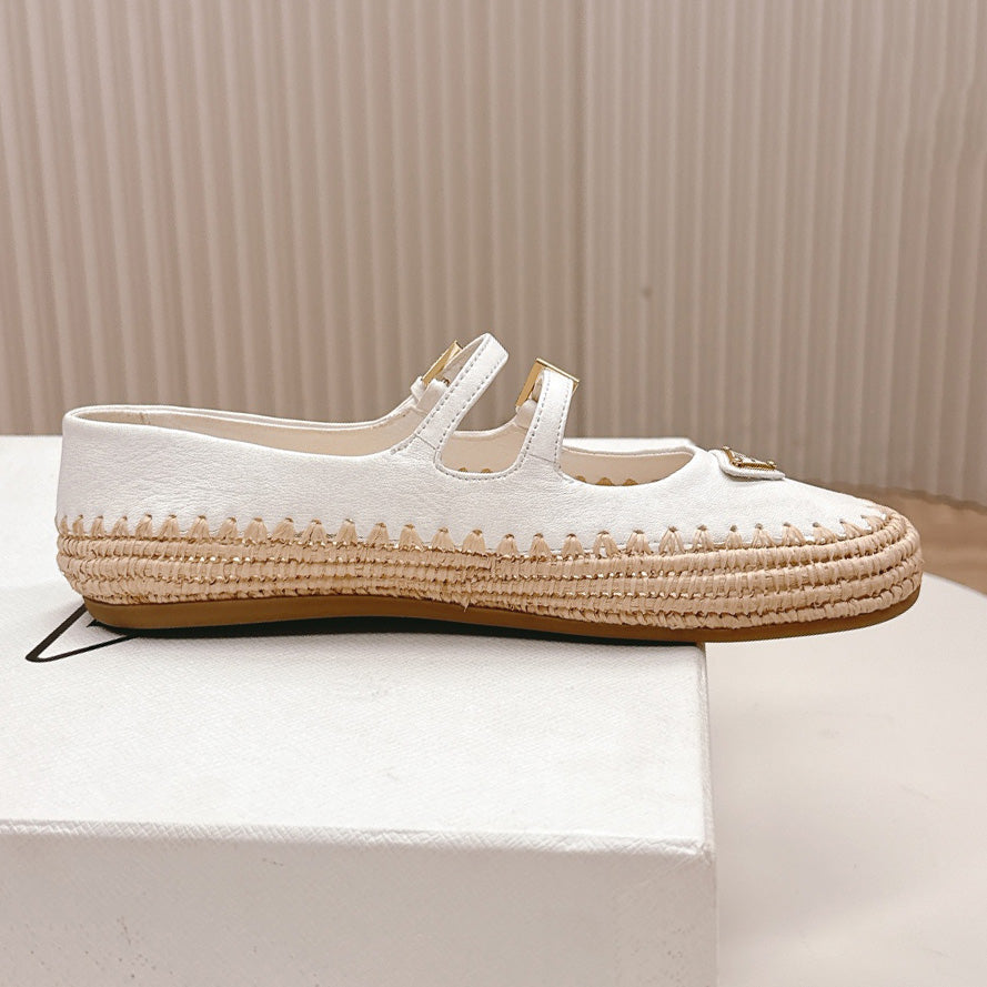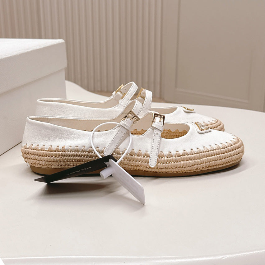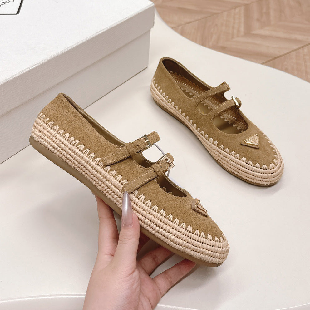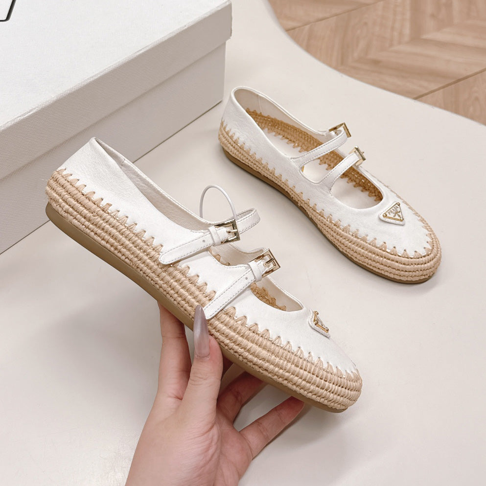 Raffia Straw Mary Jane Flat Single Shoes 1025051503
