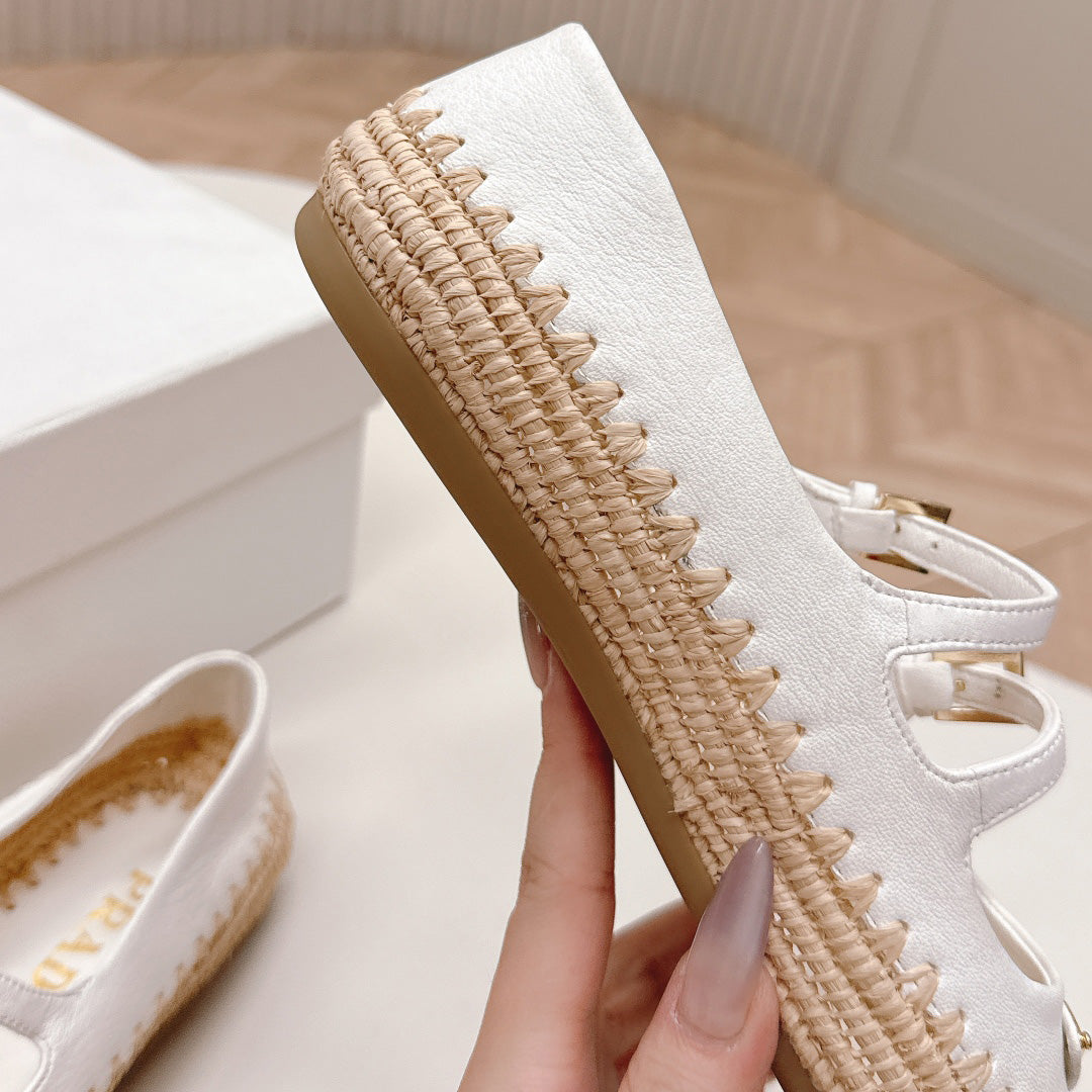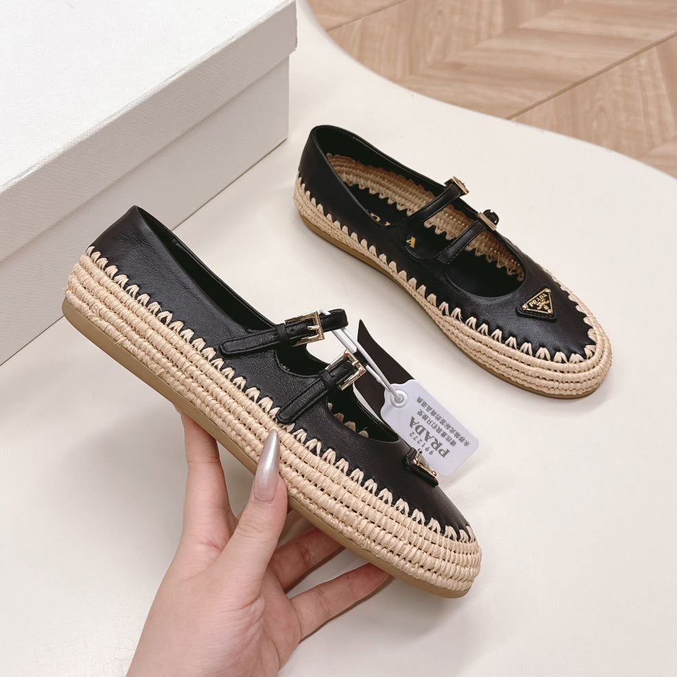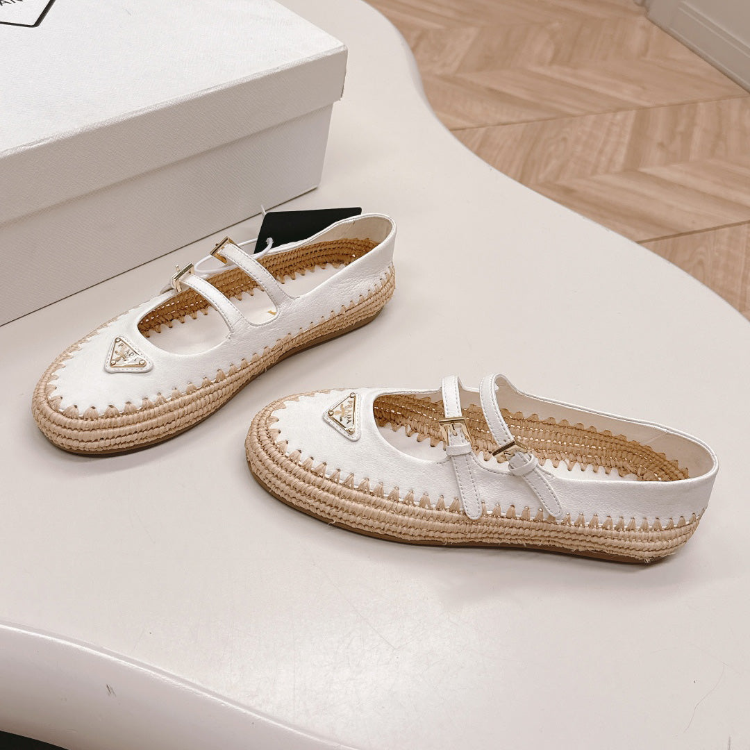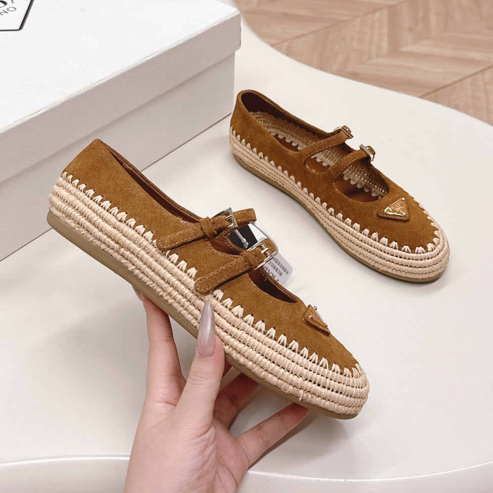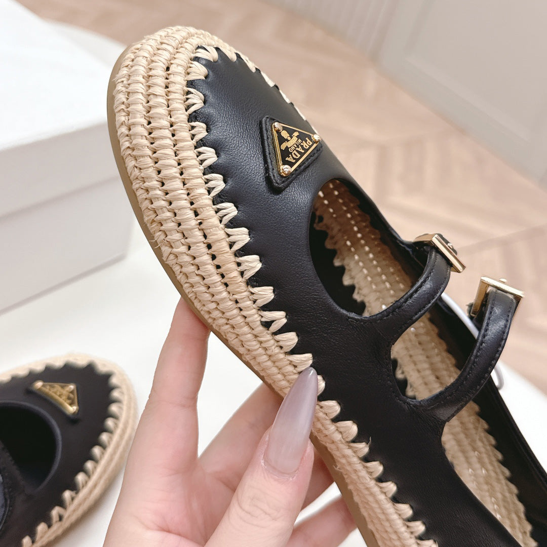 Raffia Straw Mary Jane Flat Single Shoes 1025051503