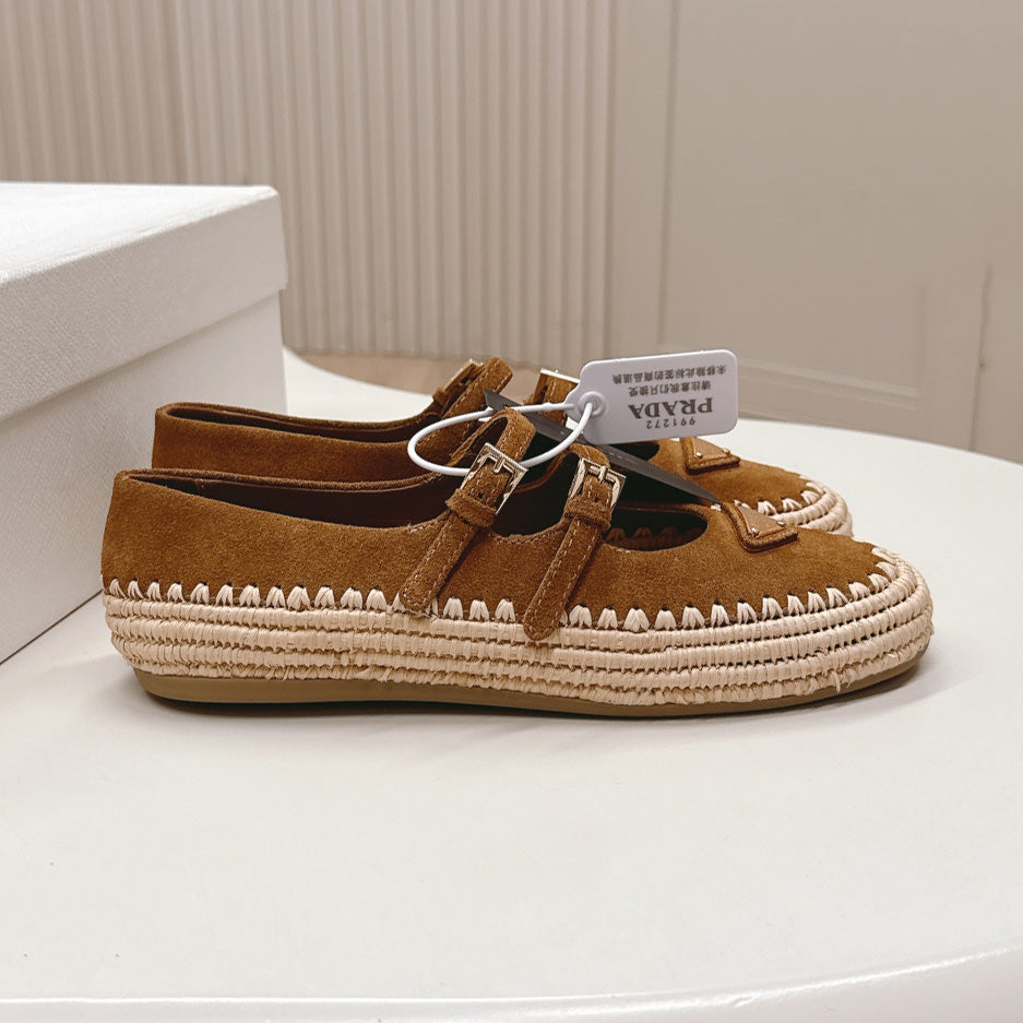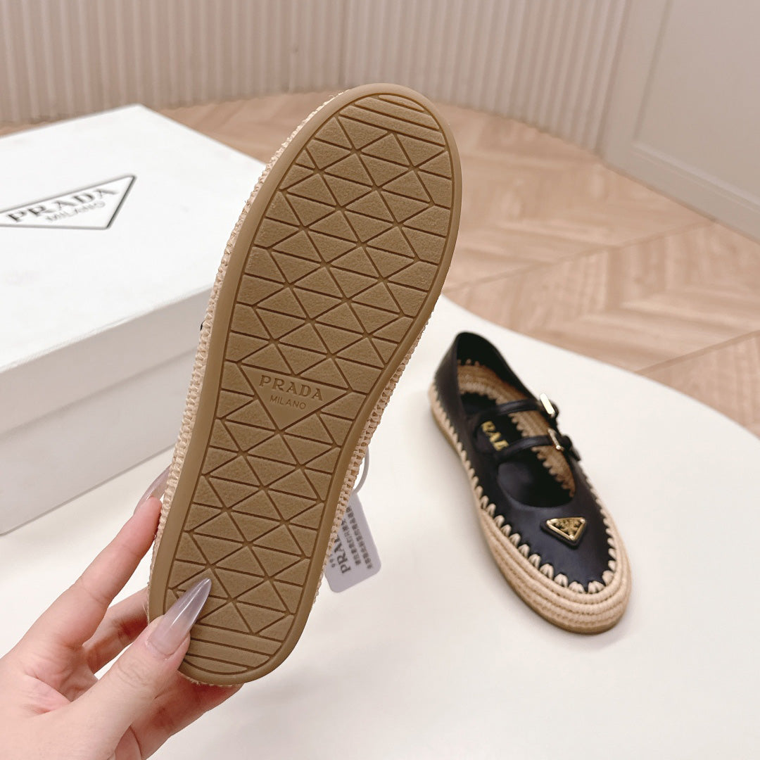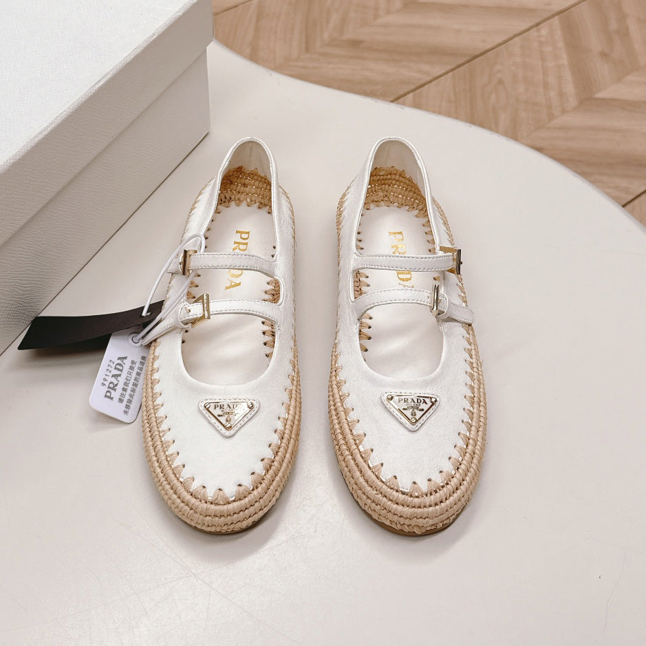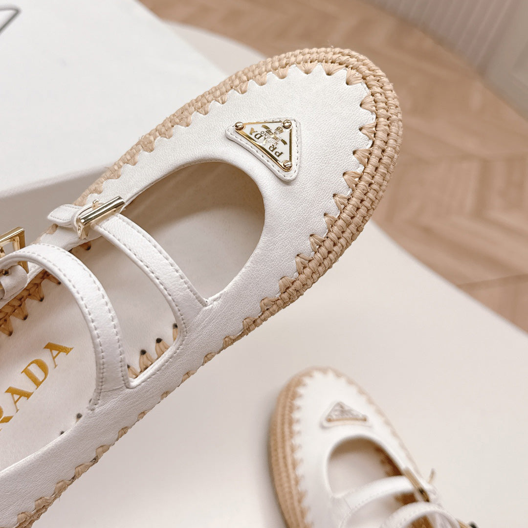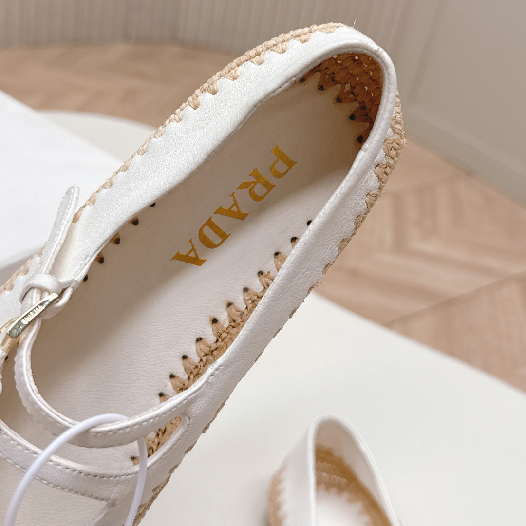 Raffia Straw Mary Jane Flat Single Shoes 1025051503