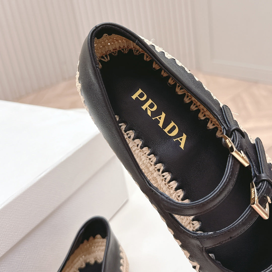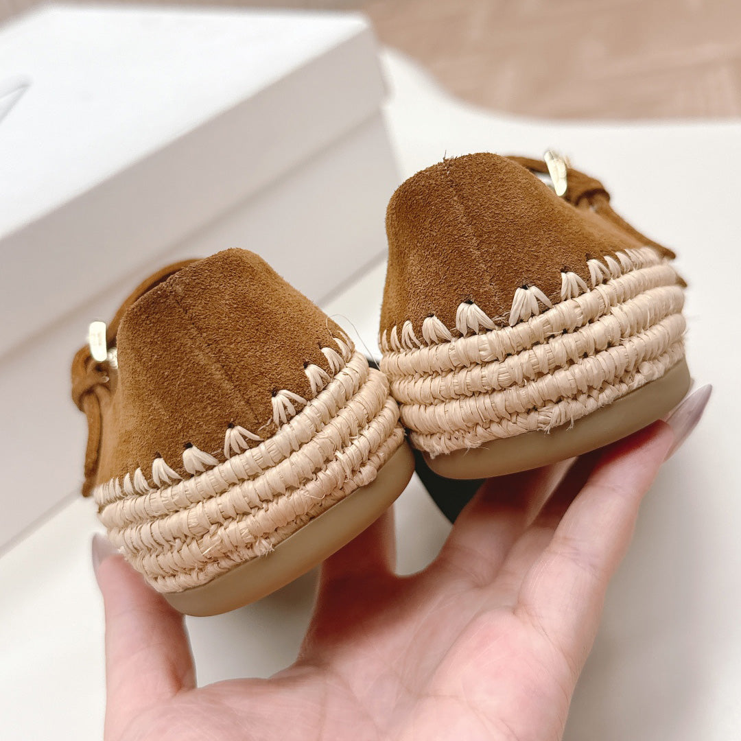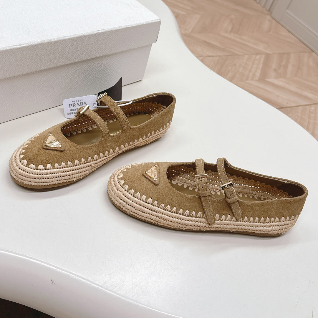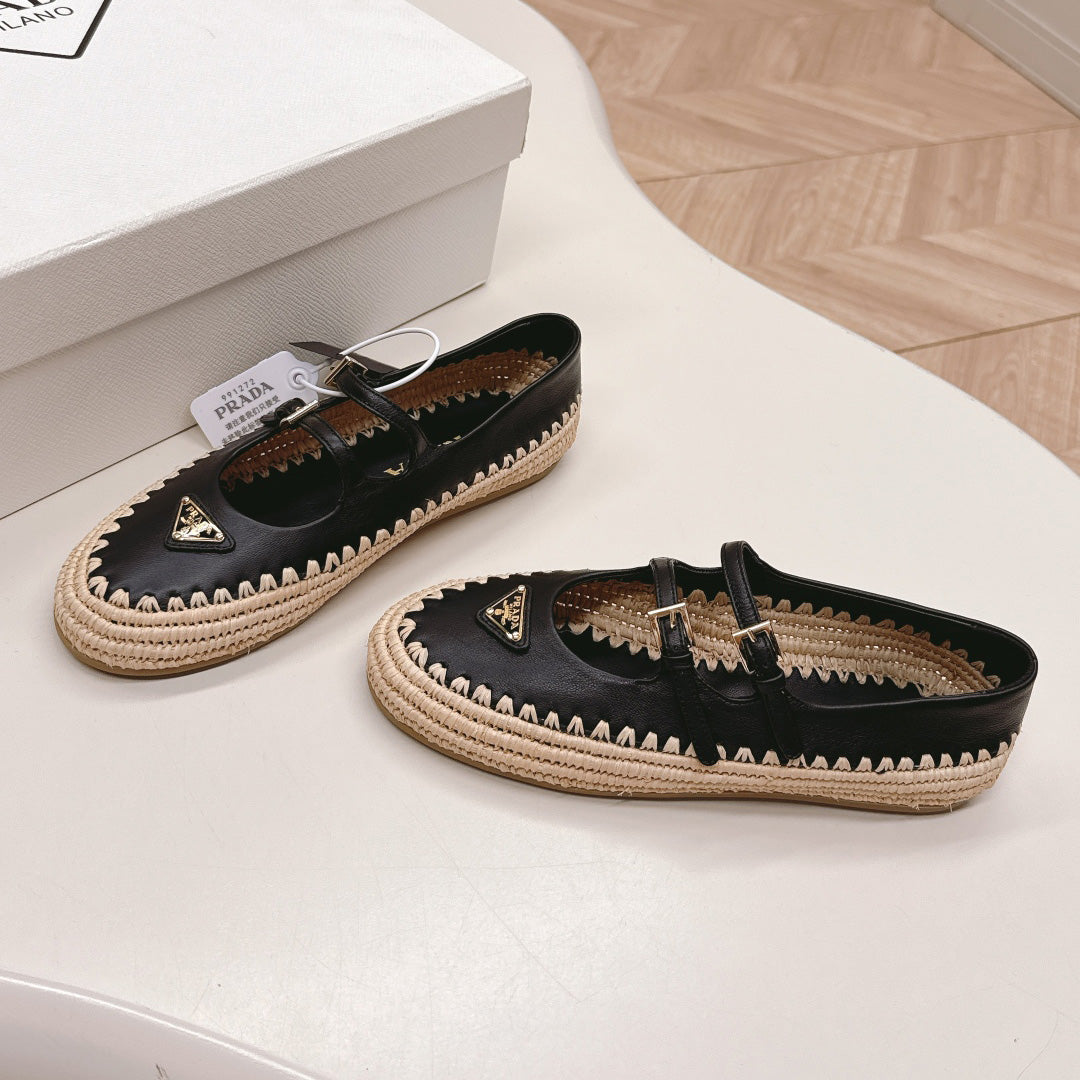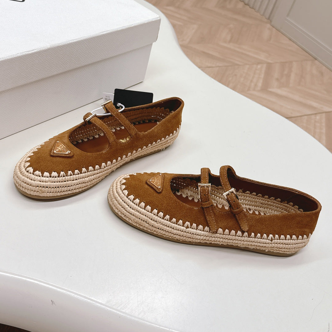 Raffia Straw Mary Jane Flat Single Shoes 1025051503