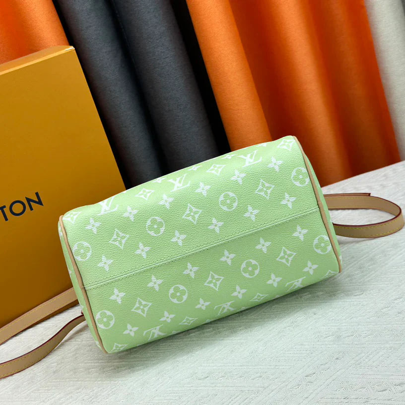 The Speedy P19 Bandoulière 25 Monogram Leather is crafted from supple cowhide leather and features a Monogram pattern that recreates the sophisticated look of a canvas print. Dazzling metal pieces, sheepskin lining and a plaque testify to Creative Director Pharrell Williams' meticulous attention to detail.
